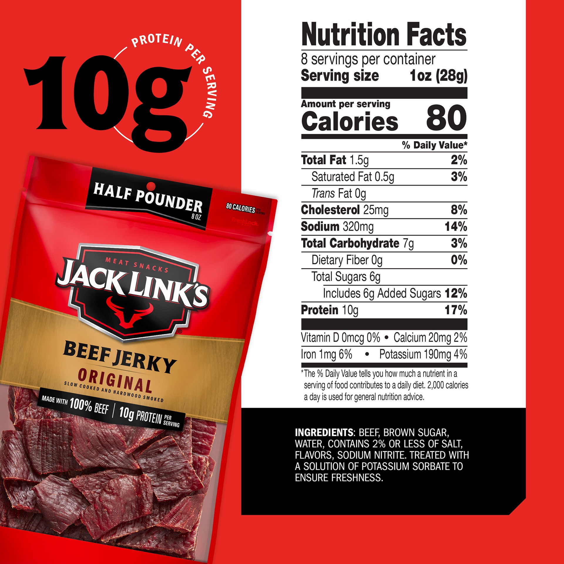 Set your inner animal free with our smoky, tender, and easy-to-devour Original Beef Jerky. Jack Links beef jerky is handcrafted by expert craftsmen that use 100% beef, real hardwood smoke, and real sp…