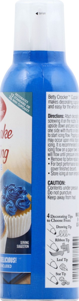 Tastes delicious! 4 Tips included. Decorates 12 standard or 24 mini cupcakes. 4 Decorating tips to choose from: Drawing tip; Ribbon tip; Leaf tip; Star tip. Betty Crocker Cupcake Icing makes decoratin…