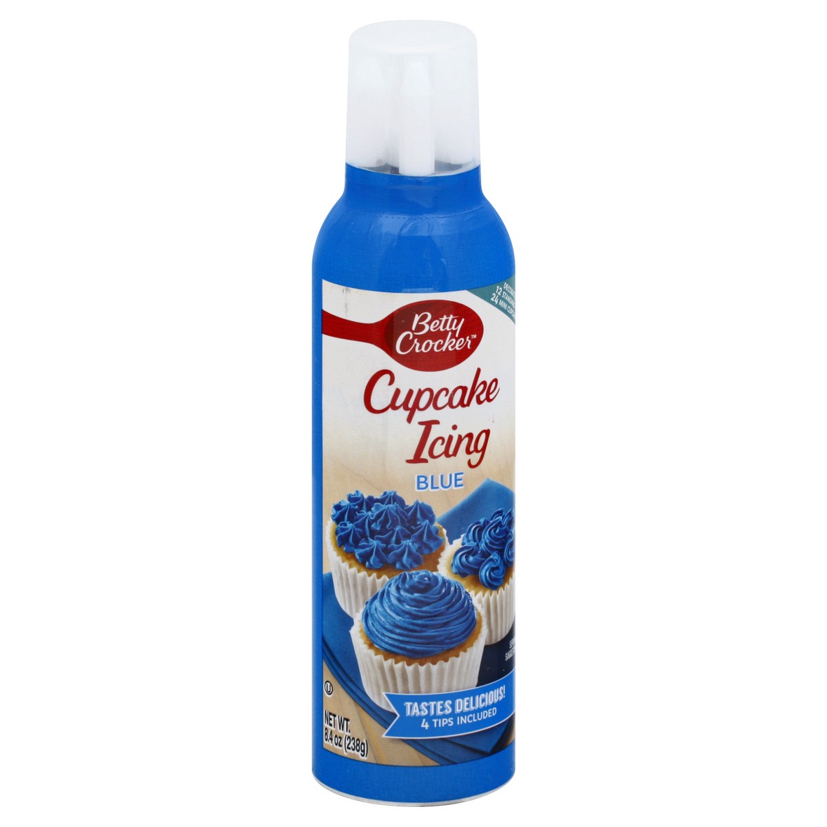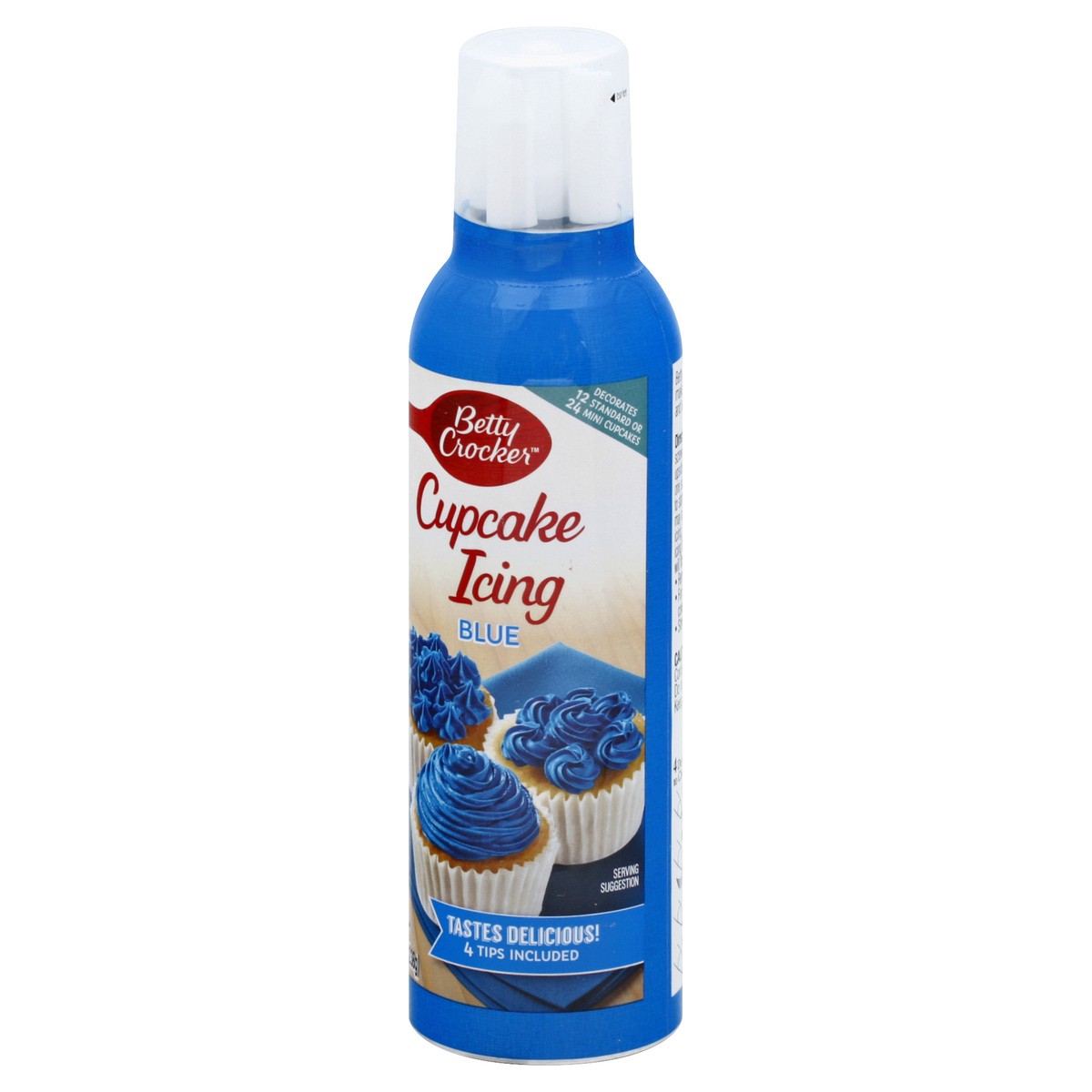 Tastes delicious! 4 Tips included. Decorates 12 standard or 24 mini cupcakes. 4 Decorating tips to choose from: Drawing tip; Ribbon tip; Leaf tip; Star tip. Betty Crocker Cupcake Icing makes decoratin…