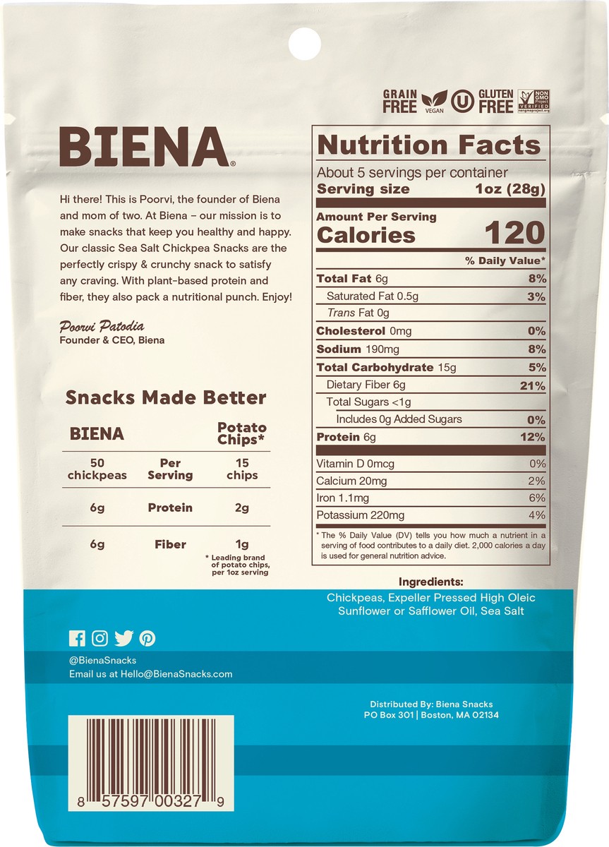 Biena Chickpea Snacks Roasted Sea Salt - 5 Oz
