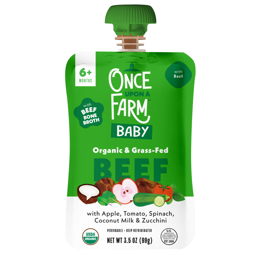 Once Upon A Farm™ Beef Bone Broth with Apple Tomato Spinach Zucchini Coconut Cream & Olive Oil, 3.5 oz