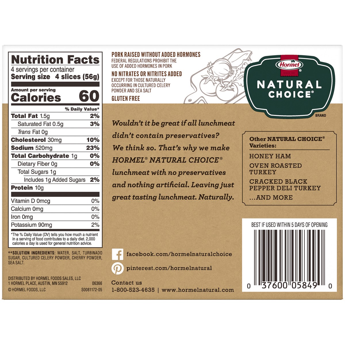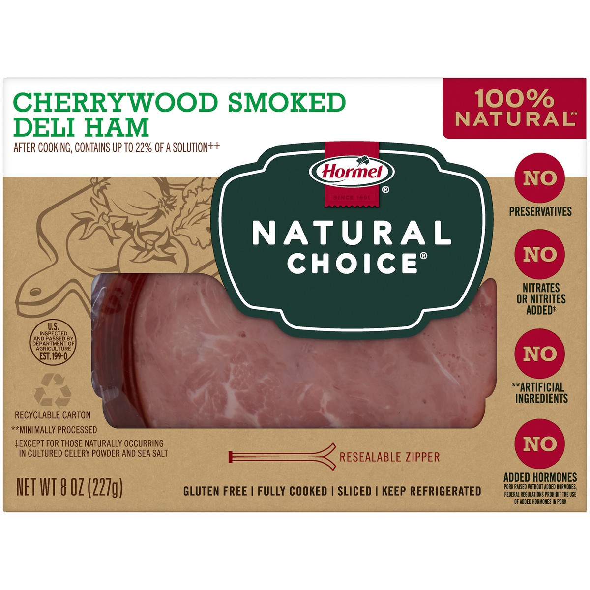 - Includes one 8-ounce HORMEL NATURAL CHOICE Cherrywood Smoked Ham in a resealable packages; Packed and sealed to lock in taste without using preservatives