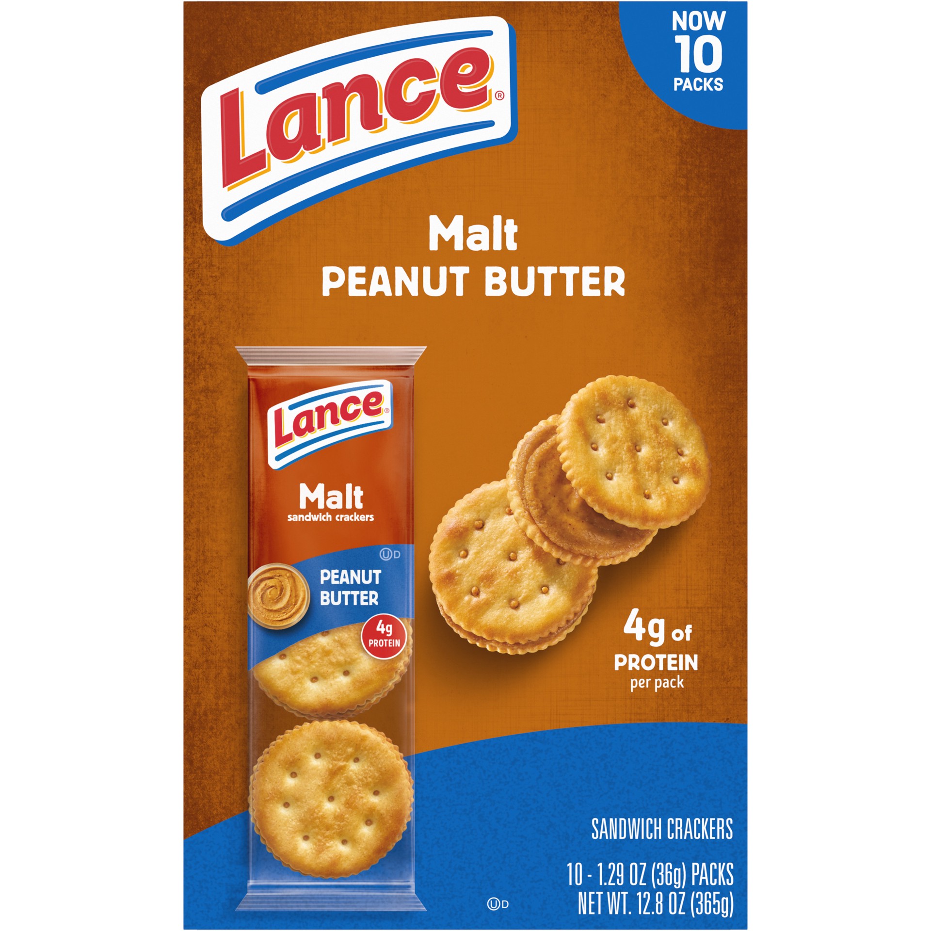 Lance Malt with Peanut Butter Sandwich Crackers, 10 Individually Wrapped Packs, 6 Sandwiches Each