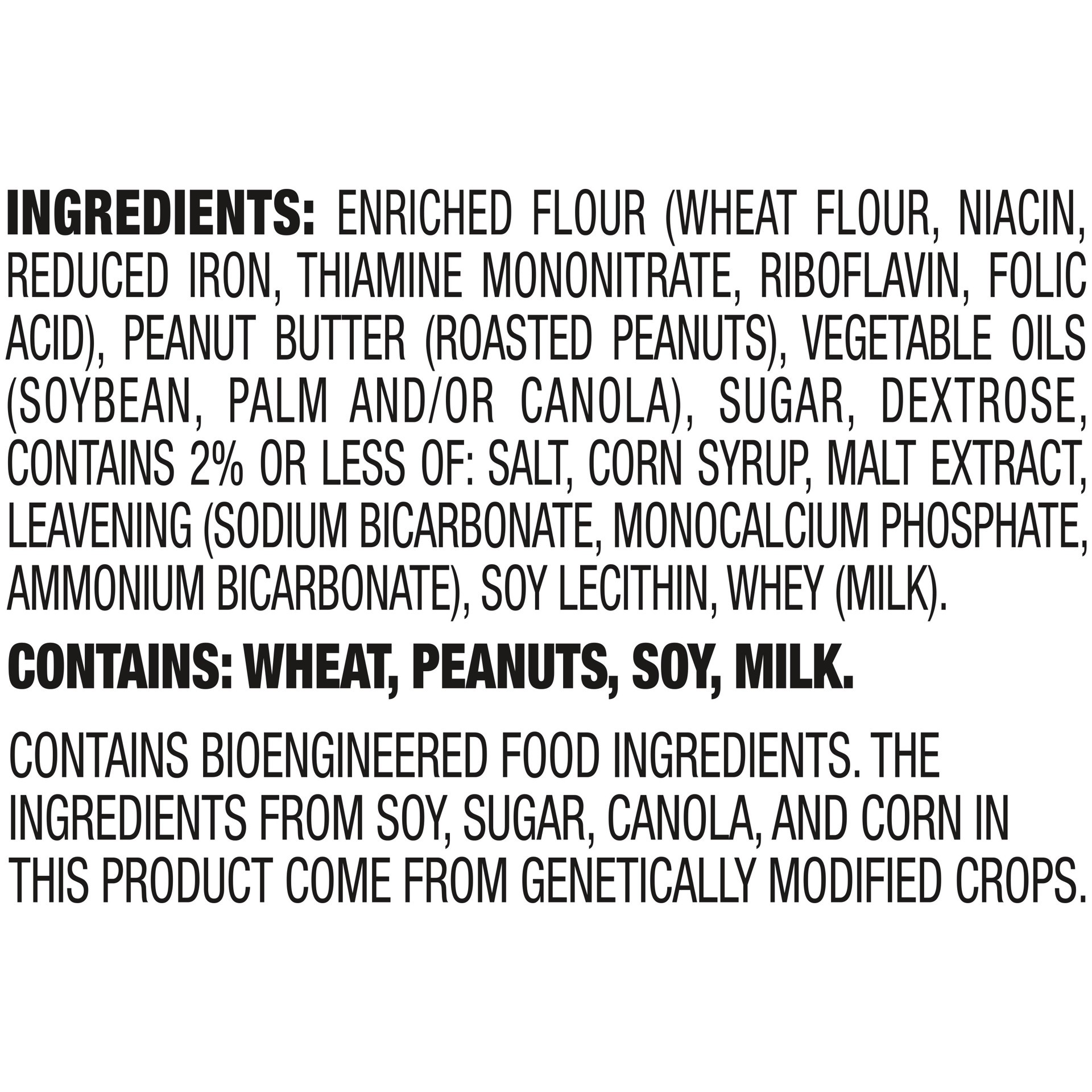 INGREDIENTS: ENRICHED FLOUR (WHEAT FLOUR, NIACIN, REDUCED IRON, THIAMINE MONONITRATE, RIBOFLAVIN, FOLIC ACID), PEANUT BUTTER (ROASTED PEANUTS), VEGETABLE OILS (SOYBEAN, PALM AND/OR CANOLA), SUGAR, DEX…