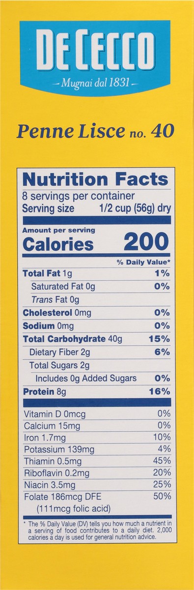 Mugnai dal 1831. No. 40 Cooking time 11 min. Al dente 9 min. For a superior quality pasta. DNV-GL Certified Product: STP-CE-PC-AGRO 38. From father to son. The De Cecco family started milling in 1831 …