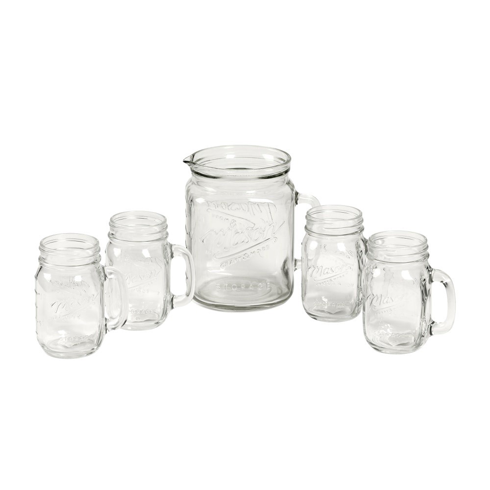 Enjoy your favorite drinks with ease with this pitcher and cup set from Mason Craft and More.Model: TTU-V0823Dishwasher Safe: Yes