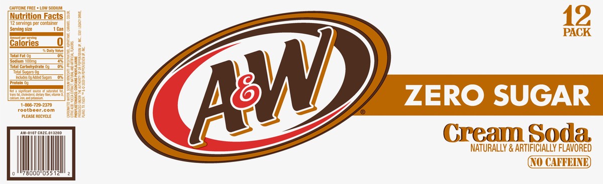 Treat yourself to the All-American classic flavor of A&W Zero Sugar Cream Soda that has a creamy, smooth and guilt-free taste. It is the perfect special treat to have at your next family night. A&W Cr…