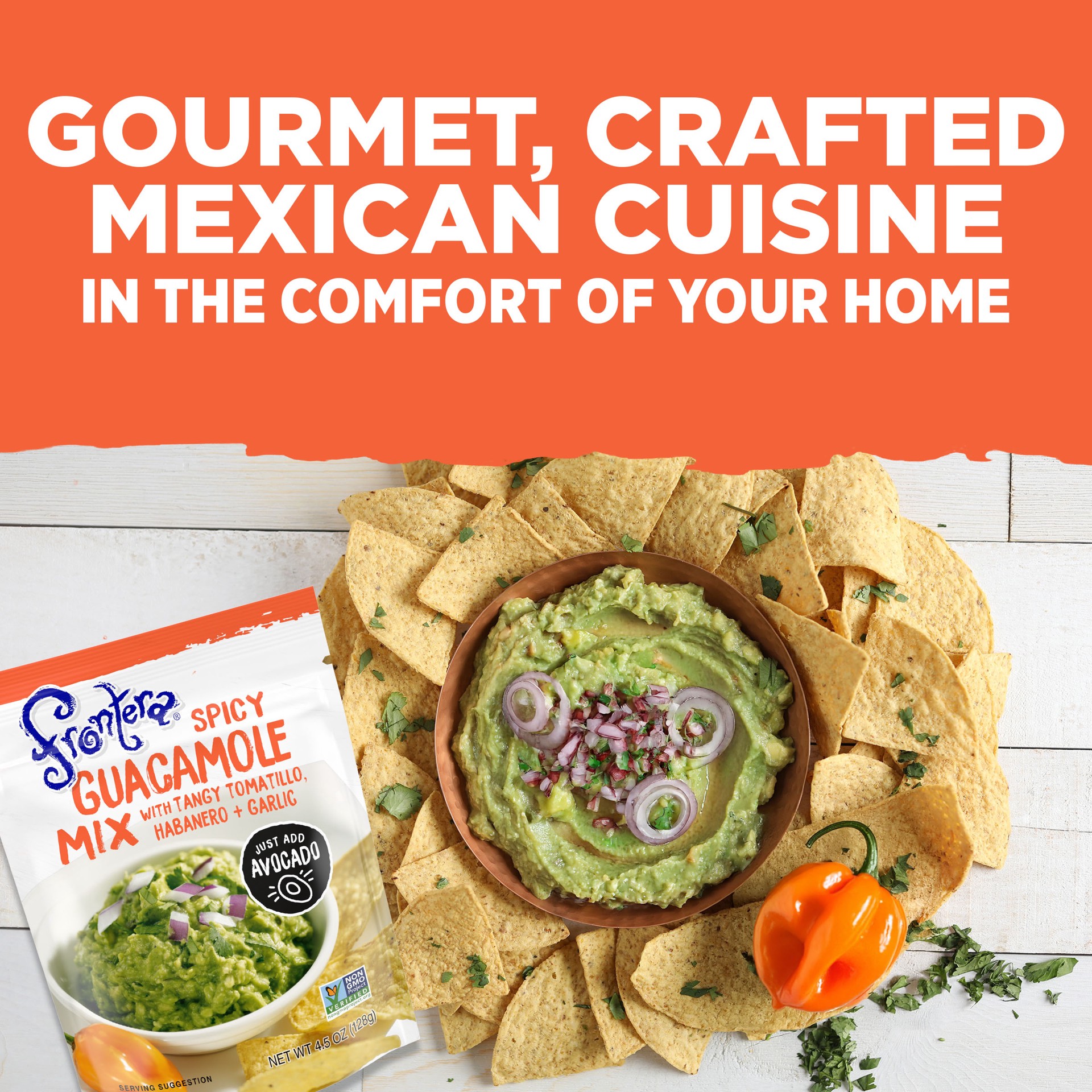 Make amazing guacamole at home and enjoy the mouth-watering flavors of Frontera Spicy Guacamole Mix. Featuring tangy fire-roasted tomatillos and tomatoes, habanero peppers, roasted serrano peppers, ga…