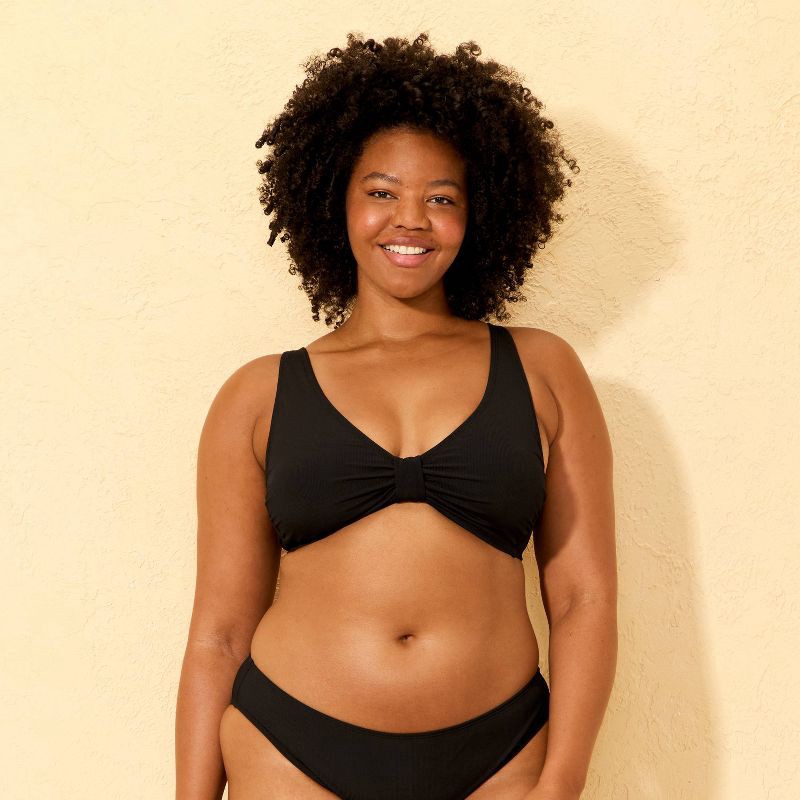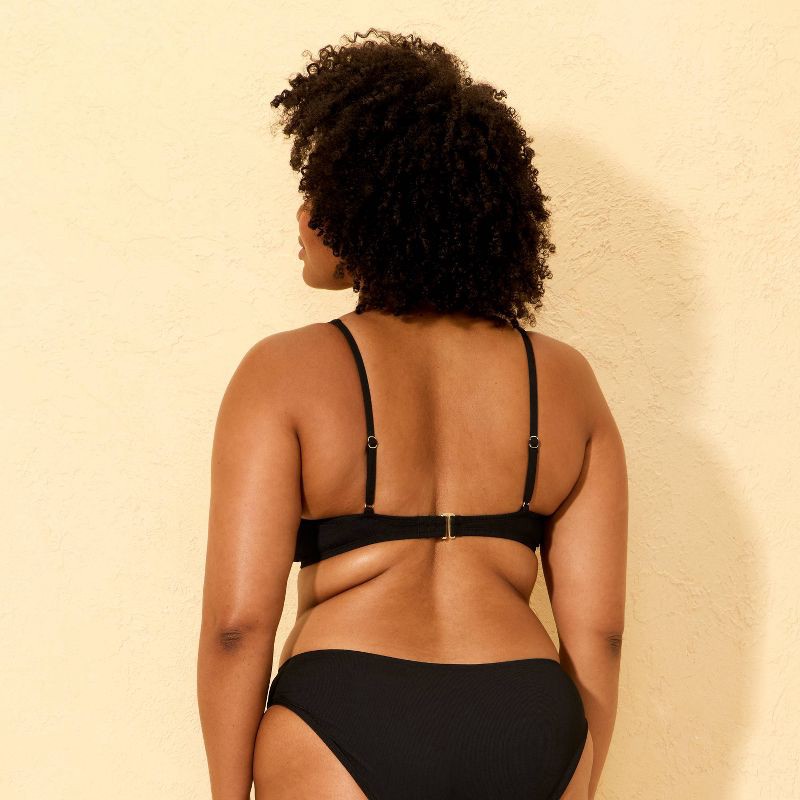 Bask in the sunshine in style with this Ribbed Tab Bralette Bikini Top from Shade & Shore™. Crafted from recycled polyester fabric with spandex and full lining for flexible comfort, this bikini top is…