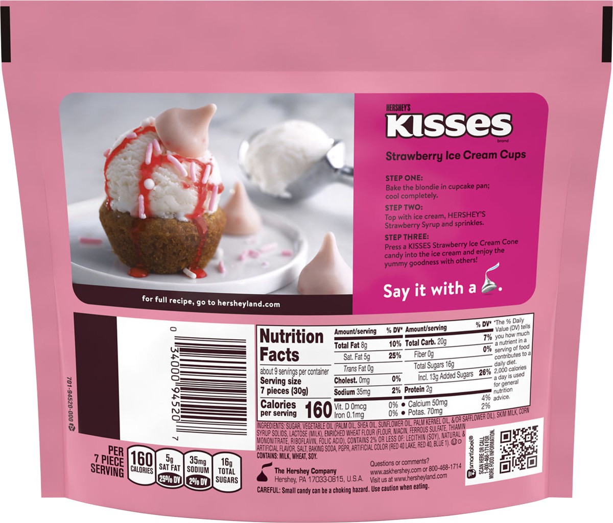 HERSHEY'S KISSES Strawberry Ice Cream Cone Flavored candies are a sweet reminder of a hot summer's day. These fruity bite size morsels with strawberry flavored creme and cookies make life a little mor…