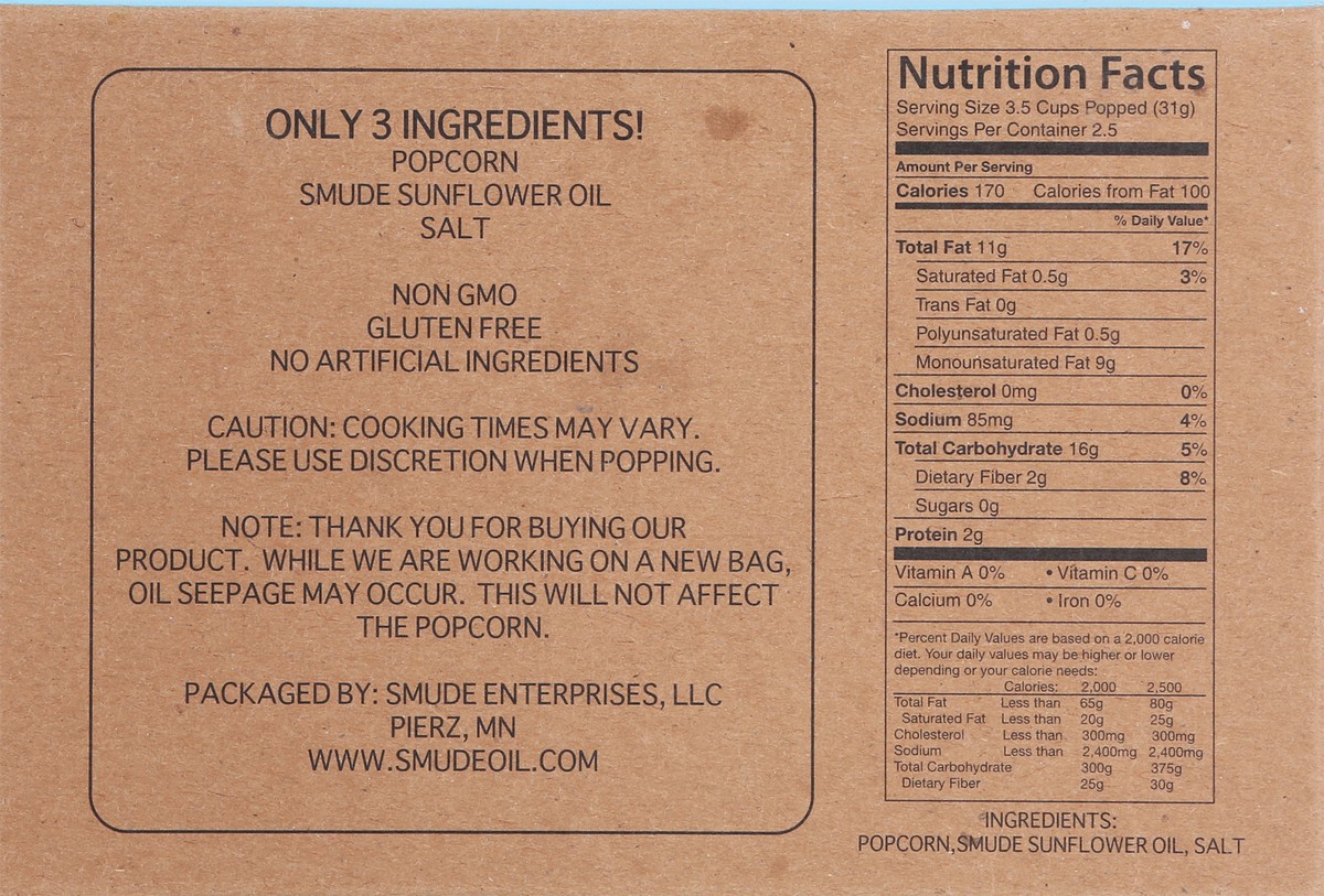 Popcorn, Smude Sunflower Oil, Salt.