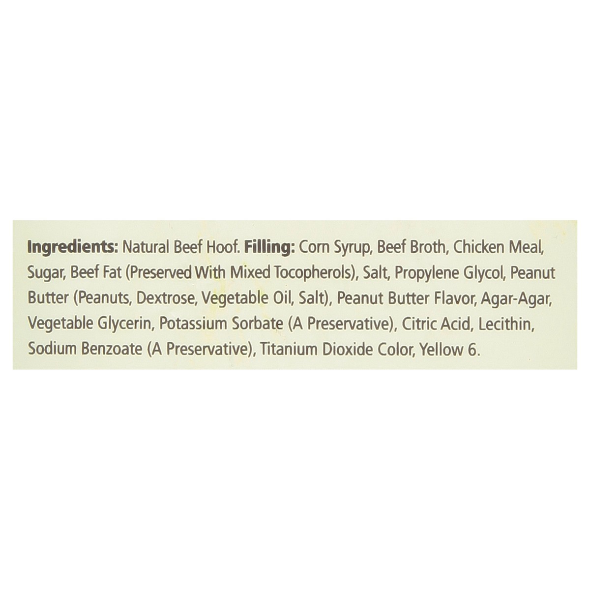 Natural Beef hoof, Filling: Corn Syrup, Beef Broth, Chicken Meal, Sugar, Beef Fat (Preserved with Mixed Tocopherols), Salt, Propylene Glycol, Peanut Butter (Peanuts, Dextrose, Vegetable Oil, Salt), Pe…