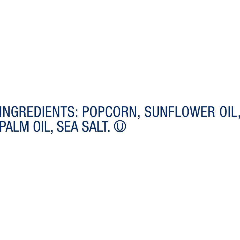 - Made with popcorn kernels, sunflower oil, palm oil, and sea salt