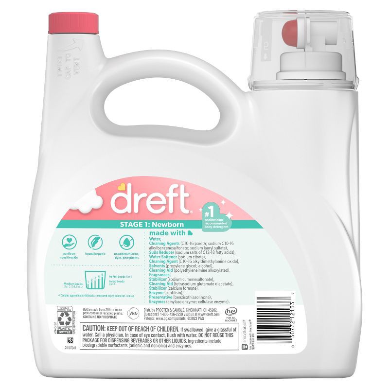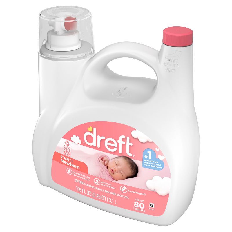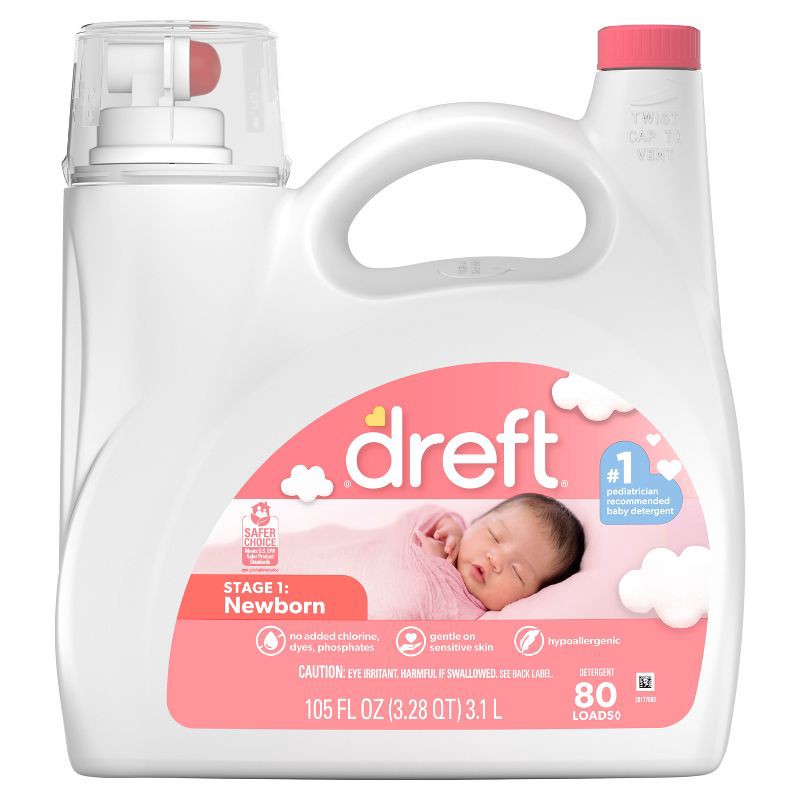 Dreft Original Stage 1: Newborn Hypoallergenic HE Liquid Laundry Detergent 80 Loads- 105 fl oz