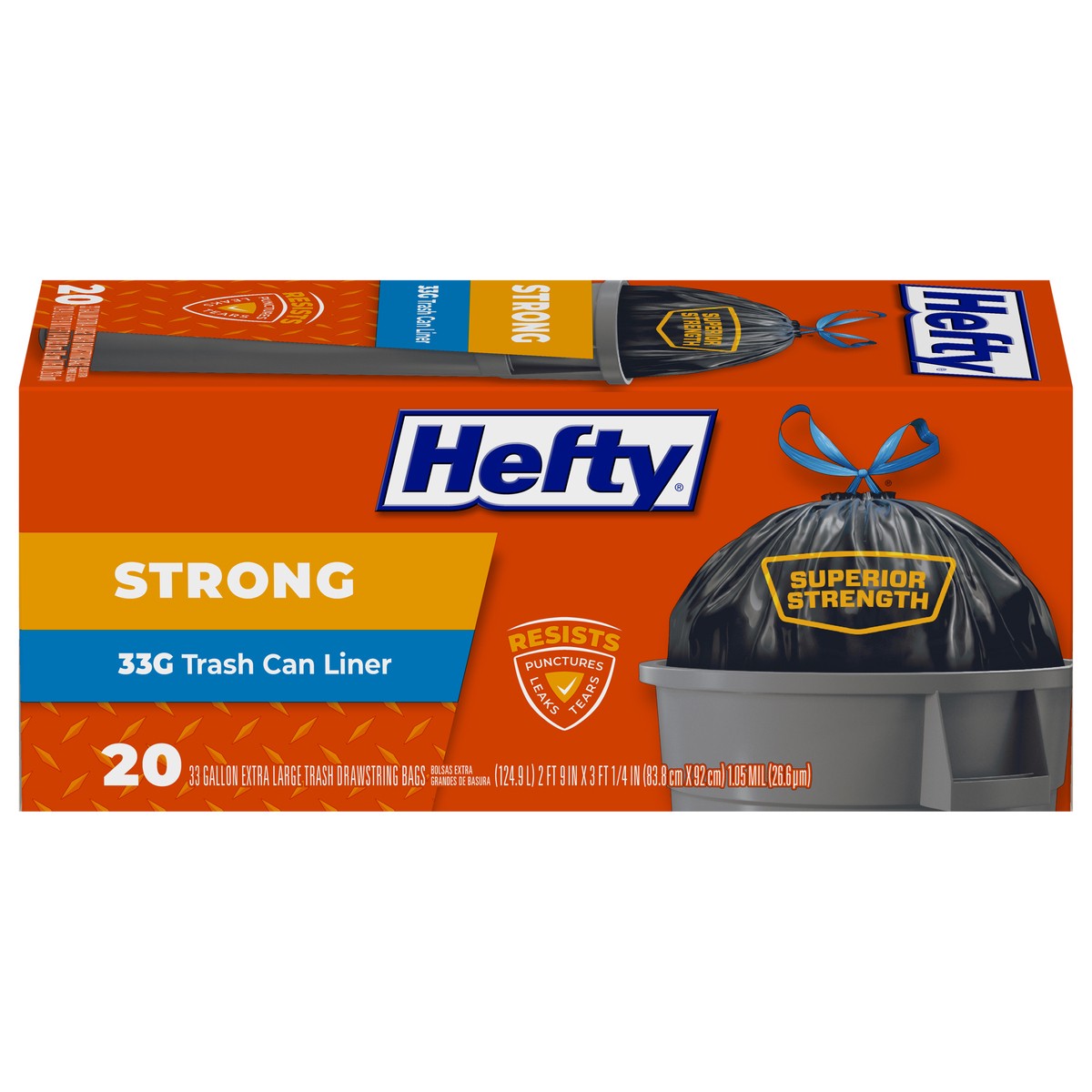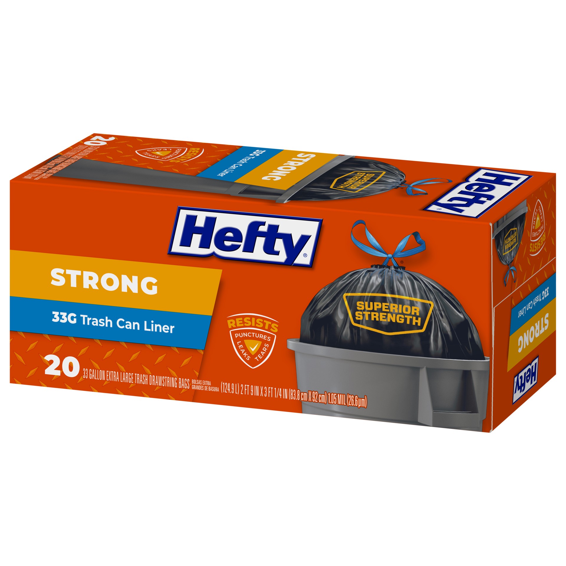 Hefty Trash Bags Drawstring Extra Strong Extra Large Trash Can Liner 33 Gallon - 20 Count