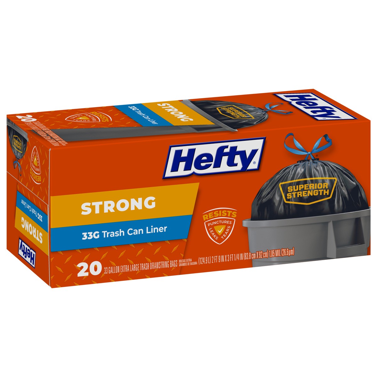 Superior Strength: Resist punctures, leaks & tears; Drawstring closure; Extra large capacity. May contain a light scent. Hefty is committed to advancing sustainable, end-of-life solutions for plastic …