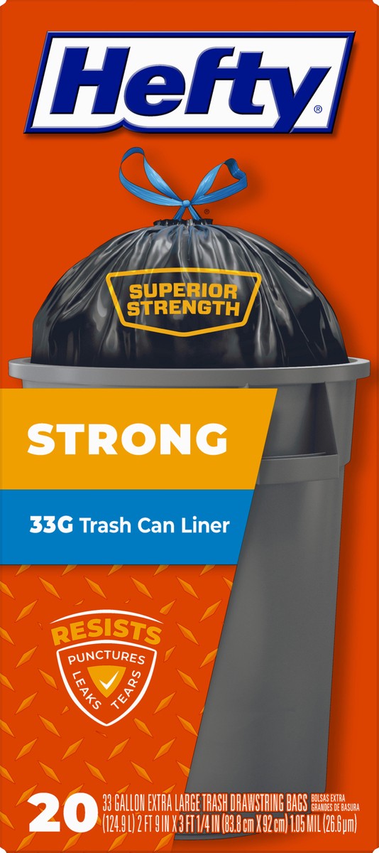 Hefty Trash Bags Drawstring Extra Strong Extra Large Trash Can Liner 33 Gallon - 20 Count