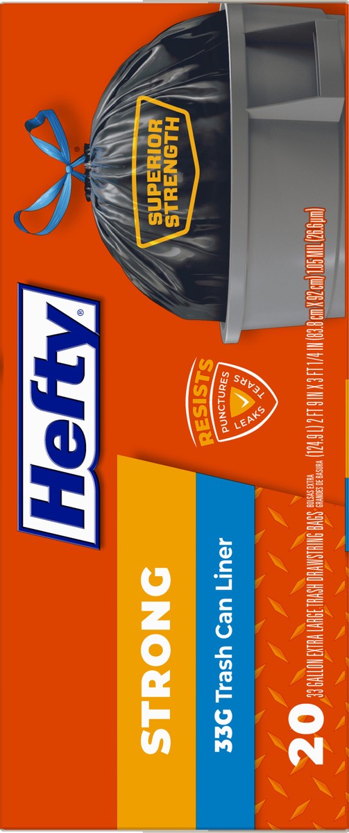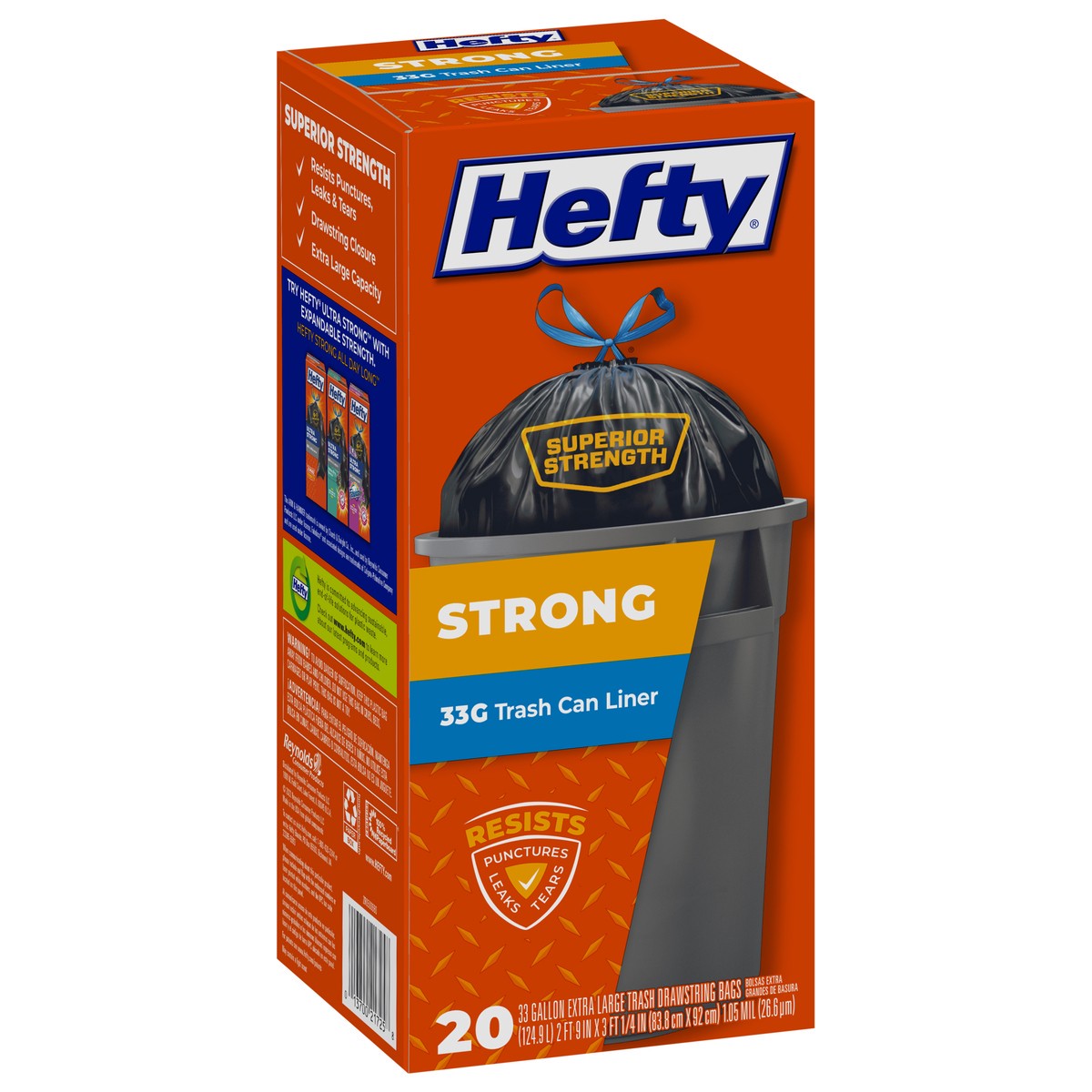 Hefty Trash Bags Drawstring Extra Strong Extra Large Trash Can Liner 33 Gallon - 20 Count