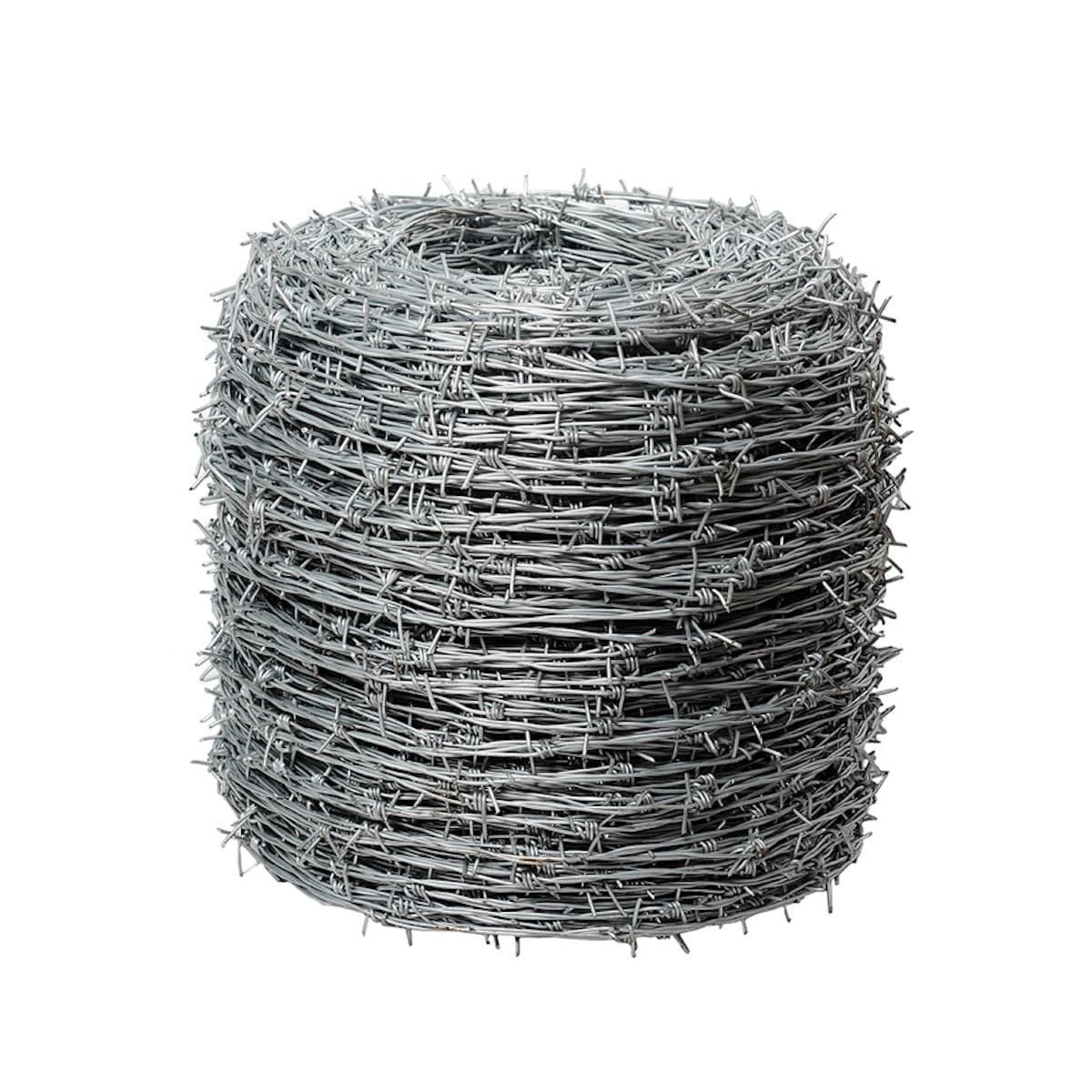 Galvanized steel 15.5-gauge high tensile barbed wire. Roll contains 1320 feet of woven barbed cable. Used for farm and agriculture fencing to contain animals or prevent unwanted foot traffic through f…