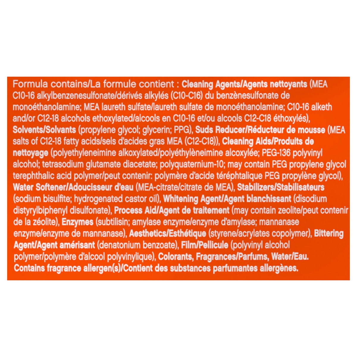 Formula Contains/La Formule Contient: Cleaning Agents/Agents Nettoyants (MEA C10-16 Alkylbenzenesulfonate/Derives Alkyles (C10-C16) Du Benzenesulfonate De Monoethanolamine; MEA Laureth Sulfate/Laureth…