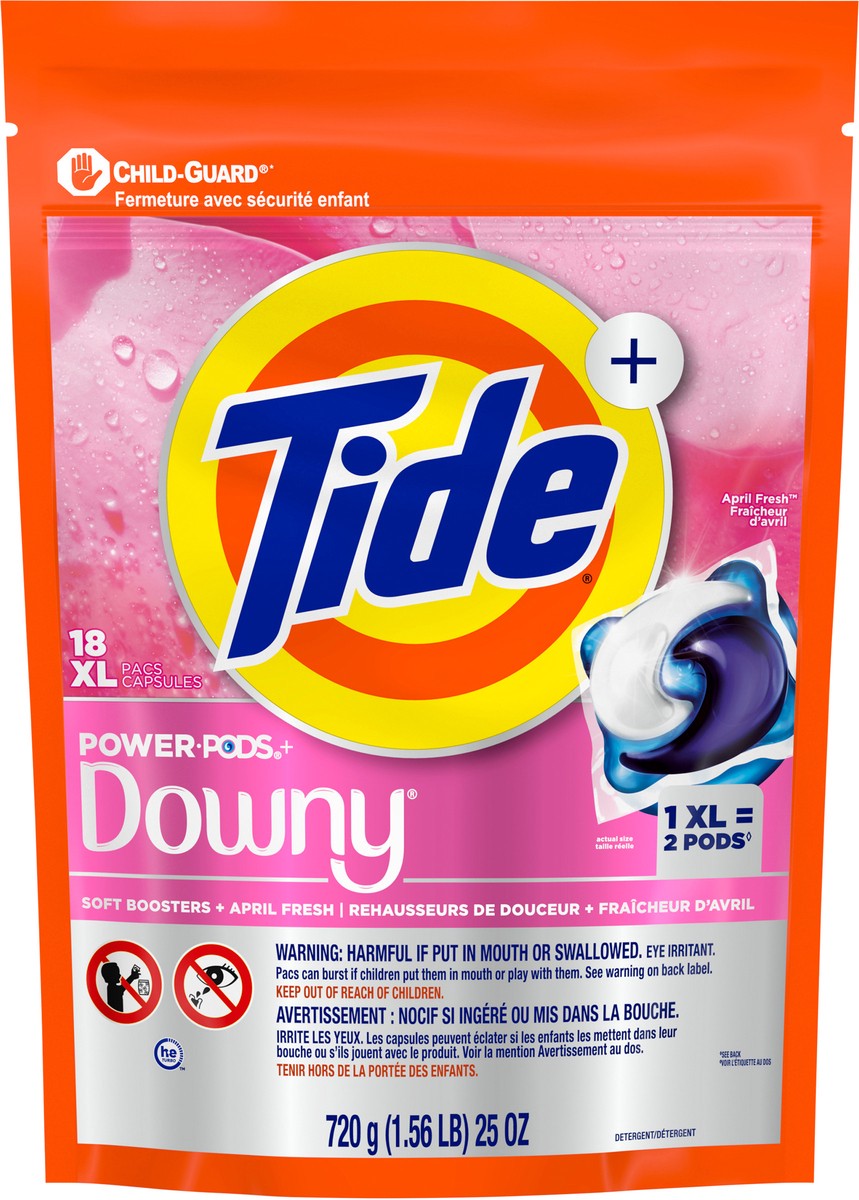 Tide Power PODs + Downy Laundry Detergent Pods, 18 Count, Soft Boosters + April Fresh, Detergent soap pacs for Laundry washing, HE compatible