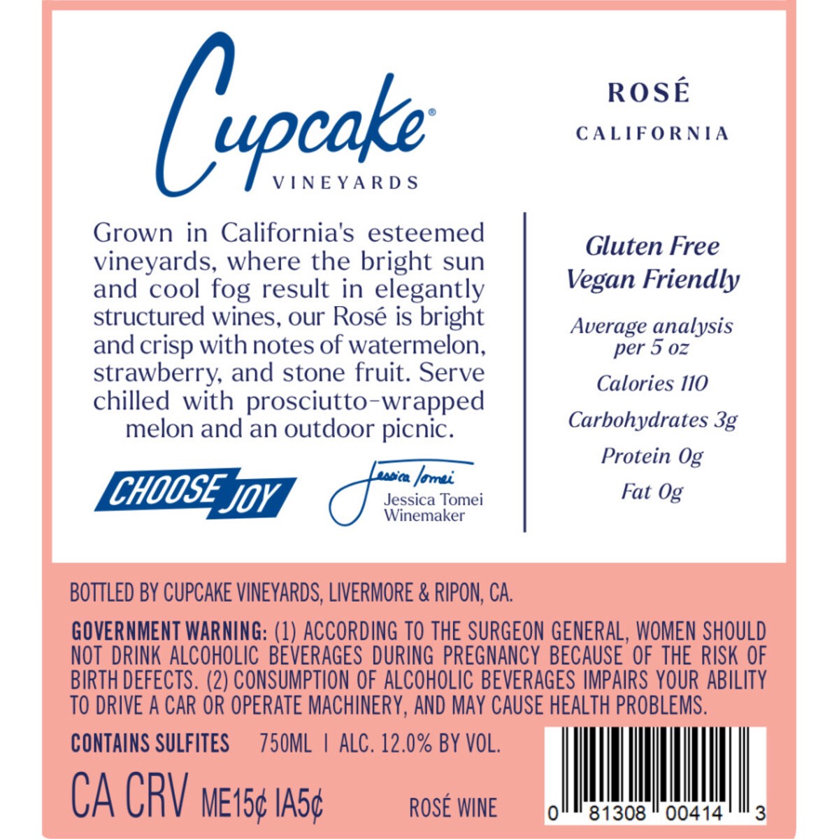 - One 750ml bottle of Cupcake Vineyards Rosé WineCupcake Vineyards Rosé Cupcake Vineyards Rosé/Rose blush wine is bright and crisp with notes of watermelon