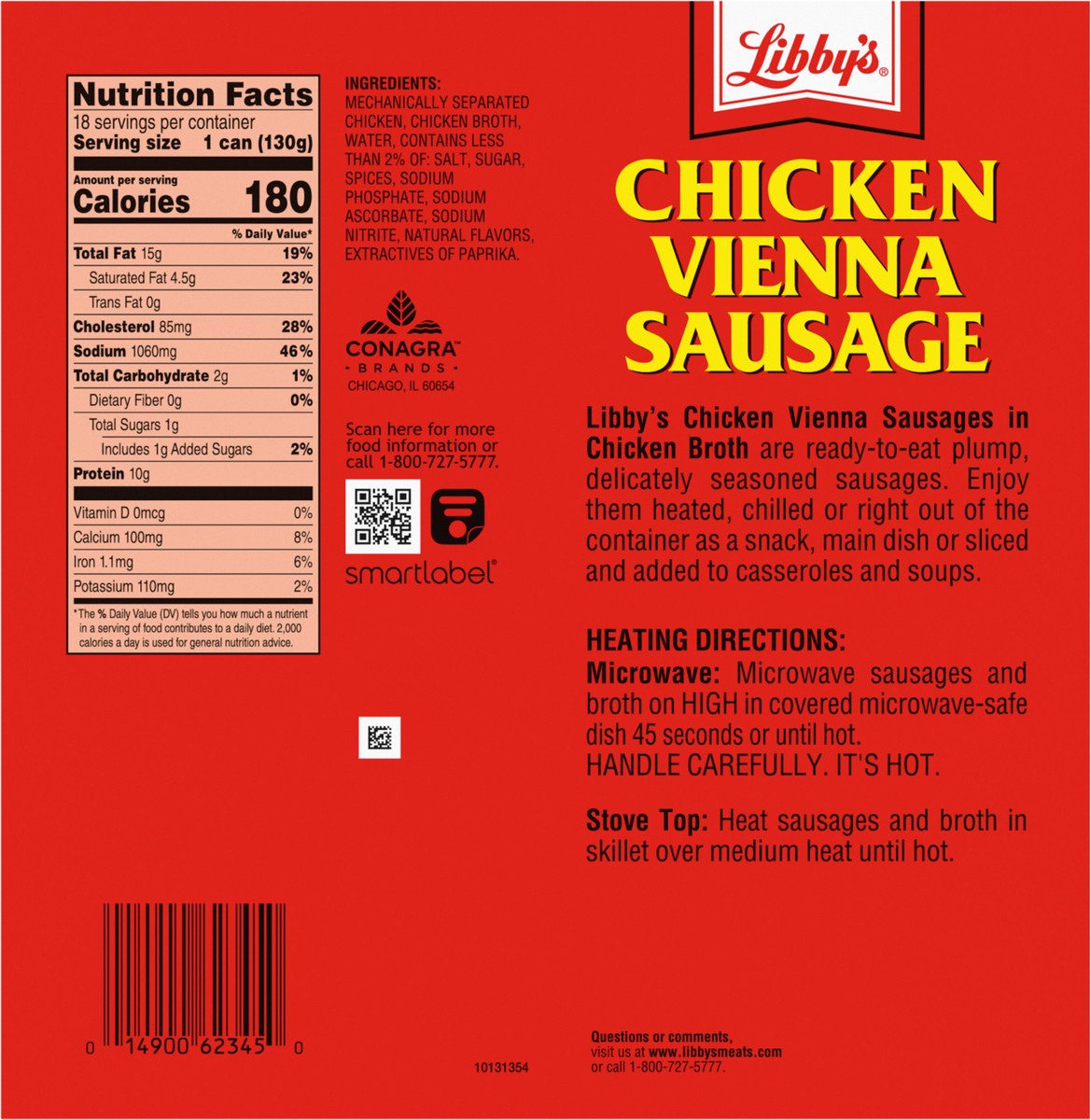 - Eighteen 4.6 oz cans of Libby's Chicken Vienna Sausage in Chicken Broth