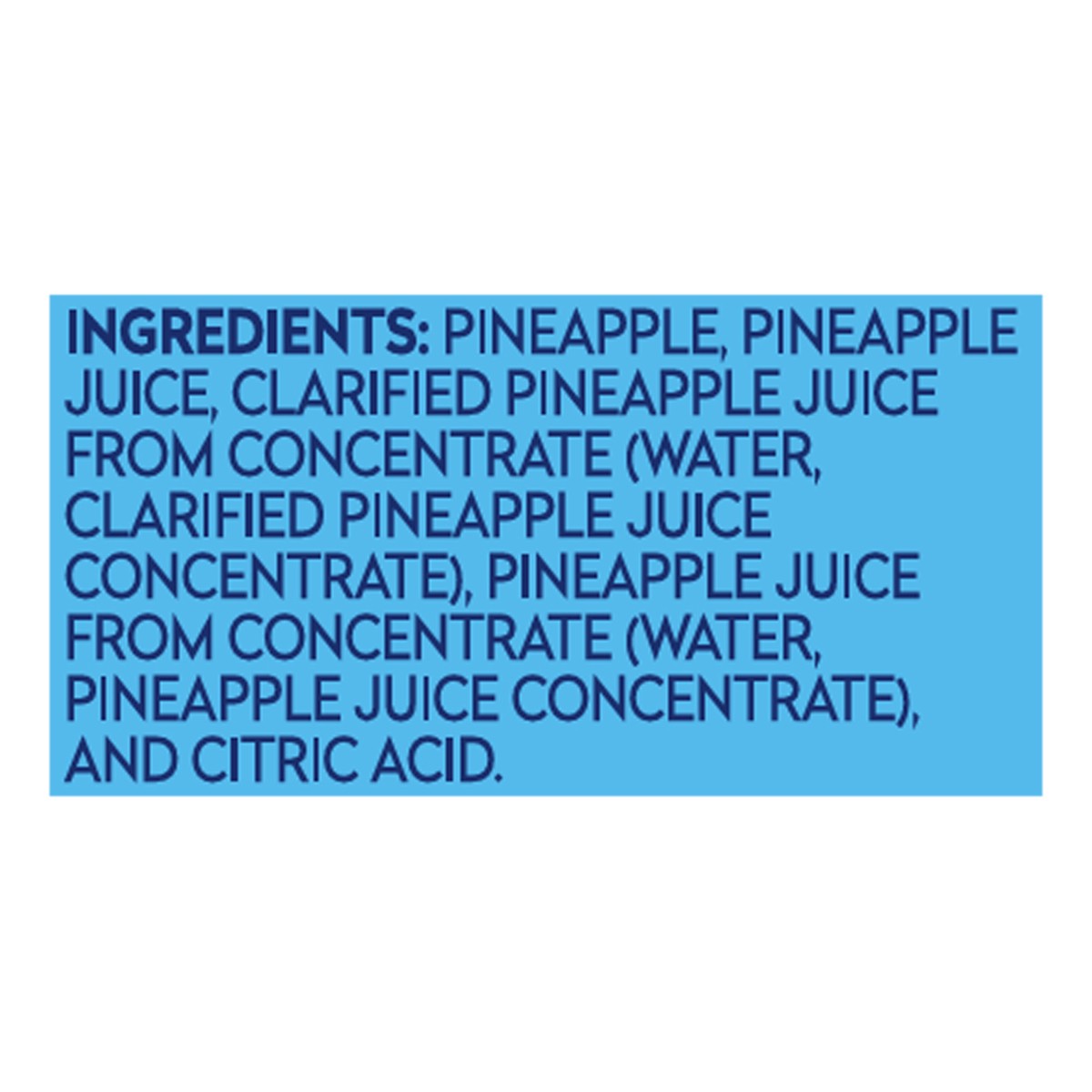 Pineapple, Pineapple Juice, Clarified Pineapple Juice from Concentrate (Water, Clarified Pineapple Juice Concentrate), Pineapple Juice from Concentrate (Water, Pineapple Juice Concentrate), and Citric…