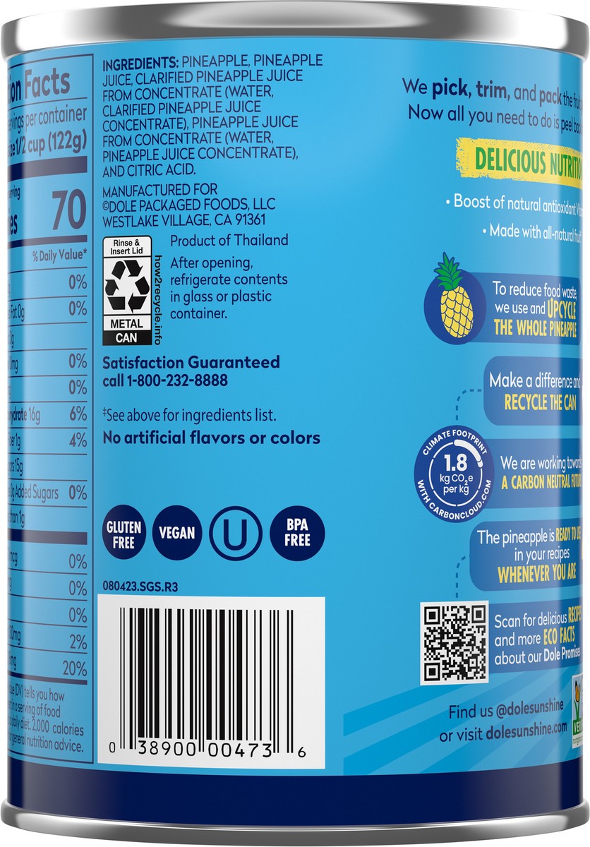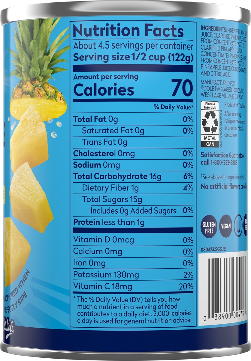 Dole Pineapple Chunks In 100% Pineapple Juice - 20 Oz
