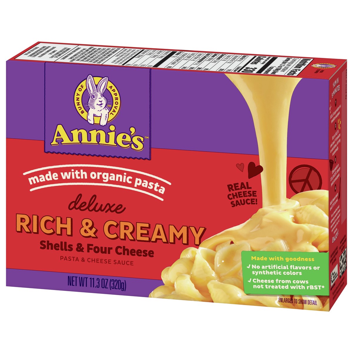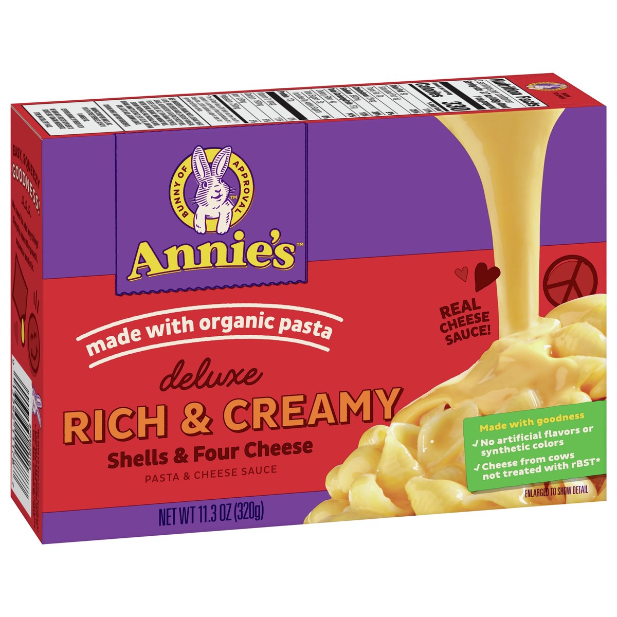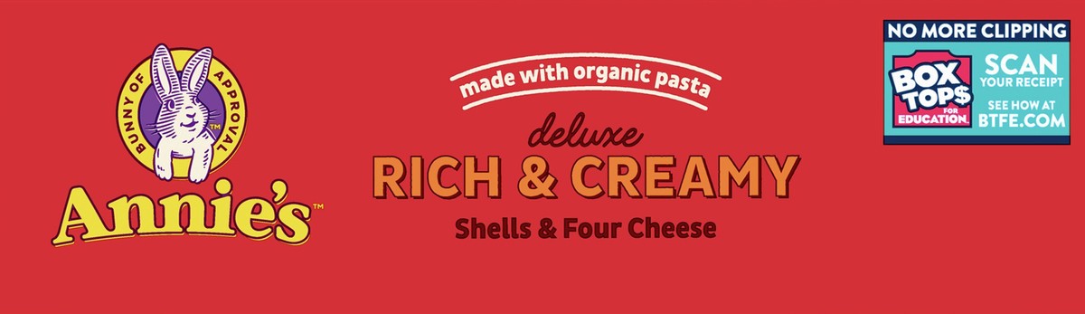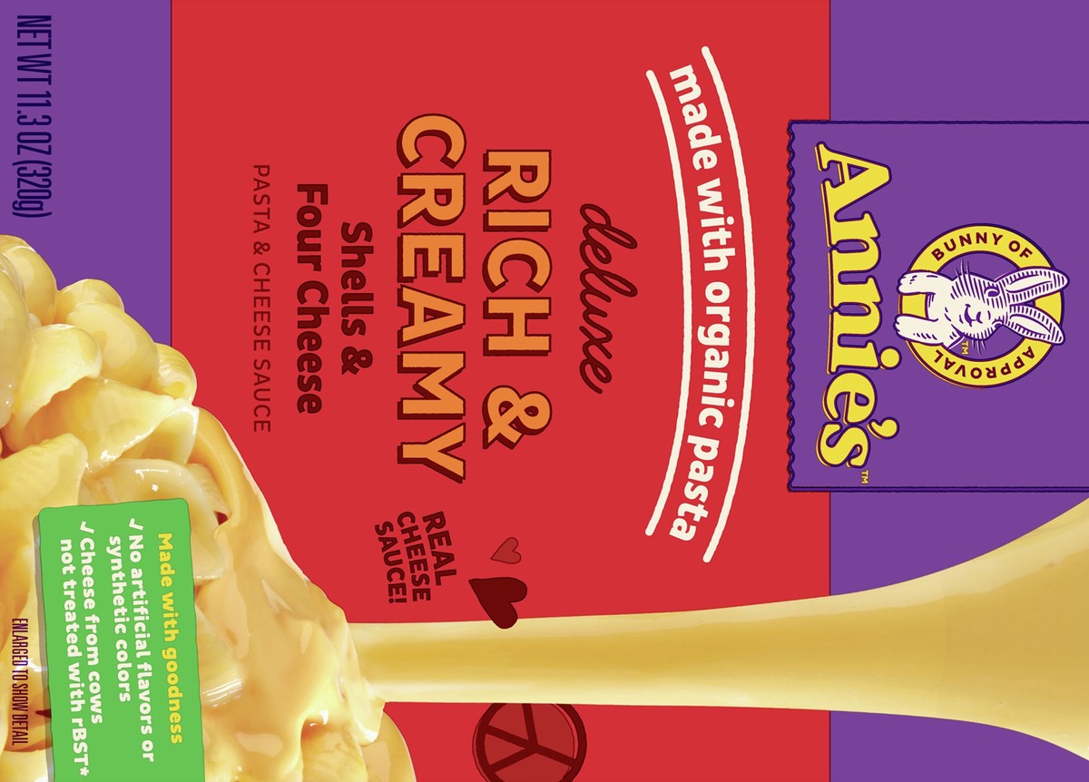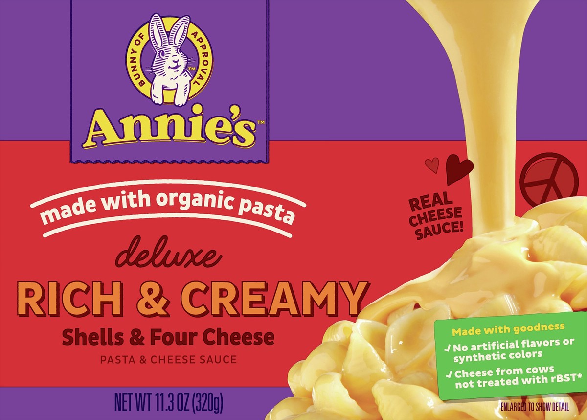 Annie’s Deluxe Rich and Creamy Macaroni and Cheese combines organic pasta shells and a tasty four cheese sauce for an adult and kids food option as comforting as it is easy to prepare. Annie's deluxe …