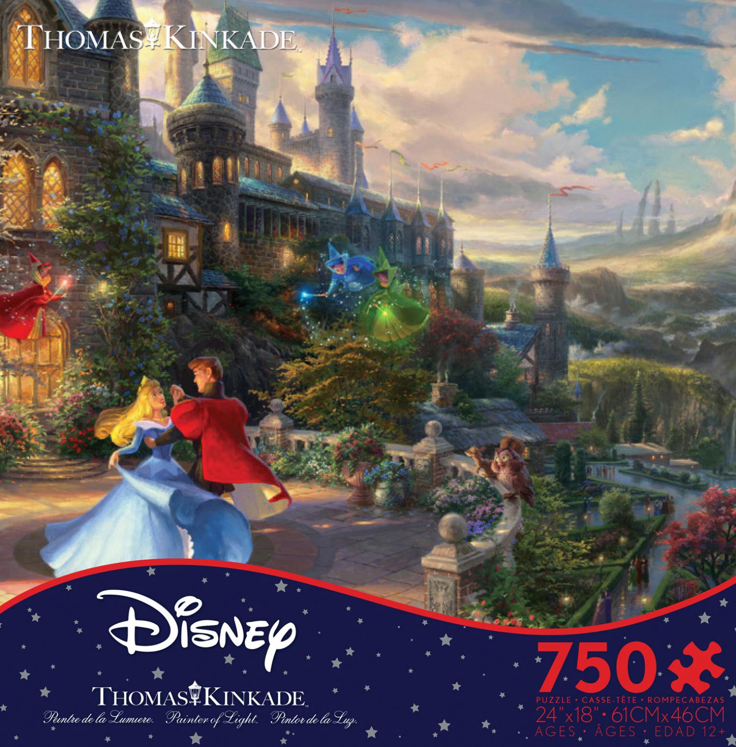 Thomas Kinkade paints Disney image of Peter Pan and Captain Hook in Neverland. Puzzle is 750 pieces. Made in the USA by Ceaco. Puzzle is 24''x18'' when assembled.