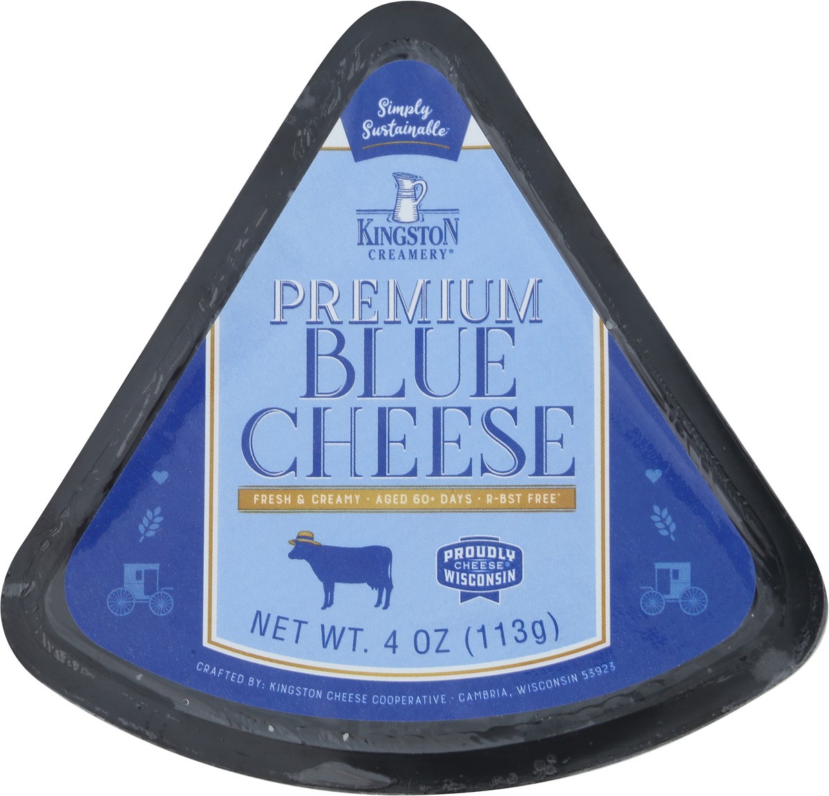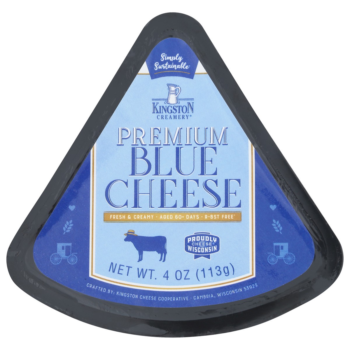 Kingston Creamery Premium Blue Cheese is crafted by a small, farmerowned Amish cooperative located in the rolling prairies of central Wisconsin. Milked by hand daily, this cheese is aged 60 days and h…