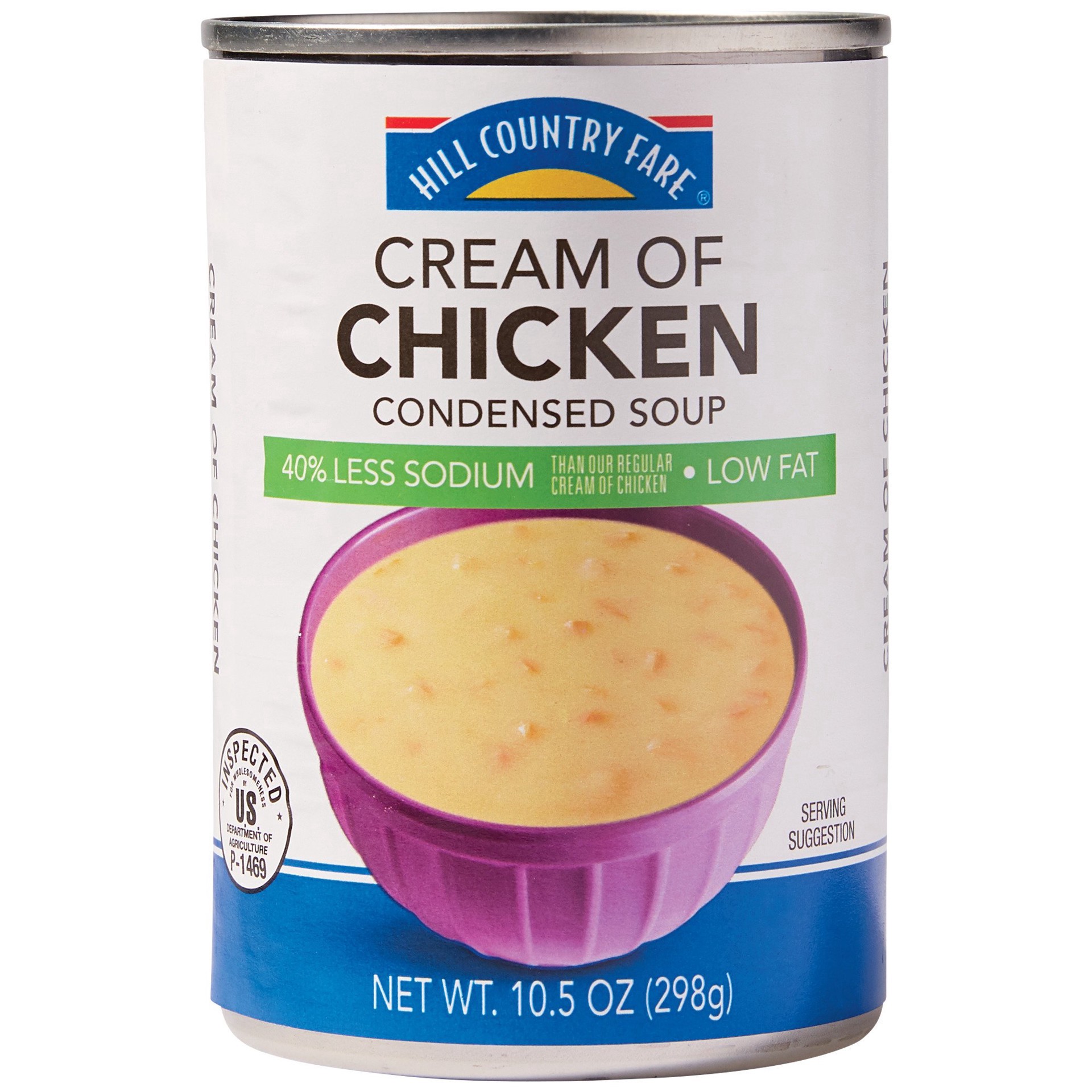 If you're looking to cut down on salt intake, try Hill Country Fare Reduced Sodium Cream of Chicken Condensed Soup. Loaded with creamy chicken taste, it has 40% less sodium than the regular version an…