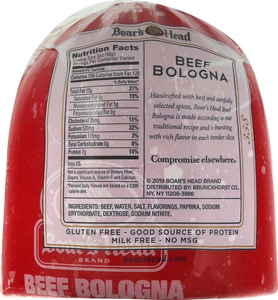 Crafted with hand-trimmed cuts of beef and carefully selected spices, this all-beef bologna is made according to a traditional recipe. Boar's Head® Beef Bologna is bursting with rich flavor in each te…