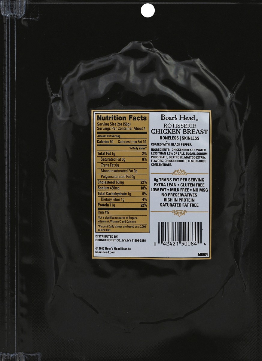 Reminiscent of savory home-style rotisserie cooking, Boar''s Head Rotisserie Seasoned Chicken Breast is delicately browned and expertly seasoned with aromatic herbs and spices for a flavor the whole f…
