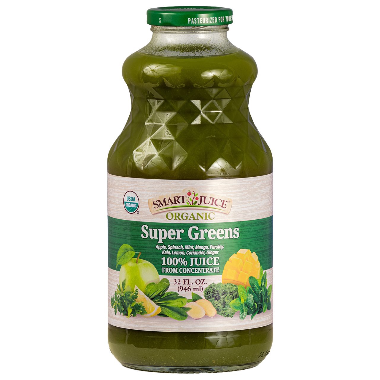 This vibrant green juice combines organic leafy greens and herbs (spinach, mint, parsley, kale) with fruit-forward notes of apple, mango, and lemon for a smooth, drinkable balance of taste and functio…