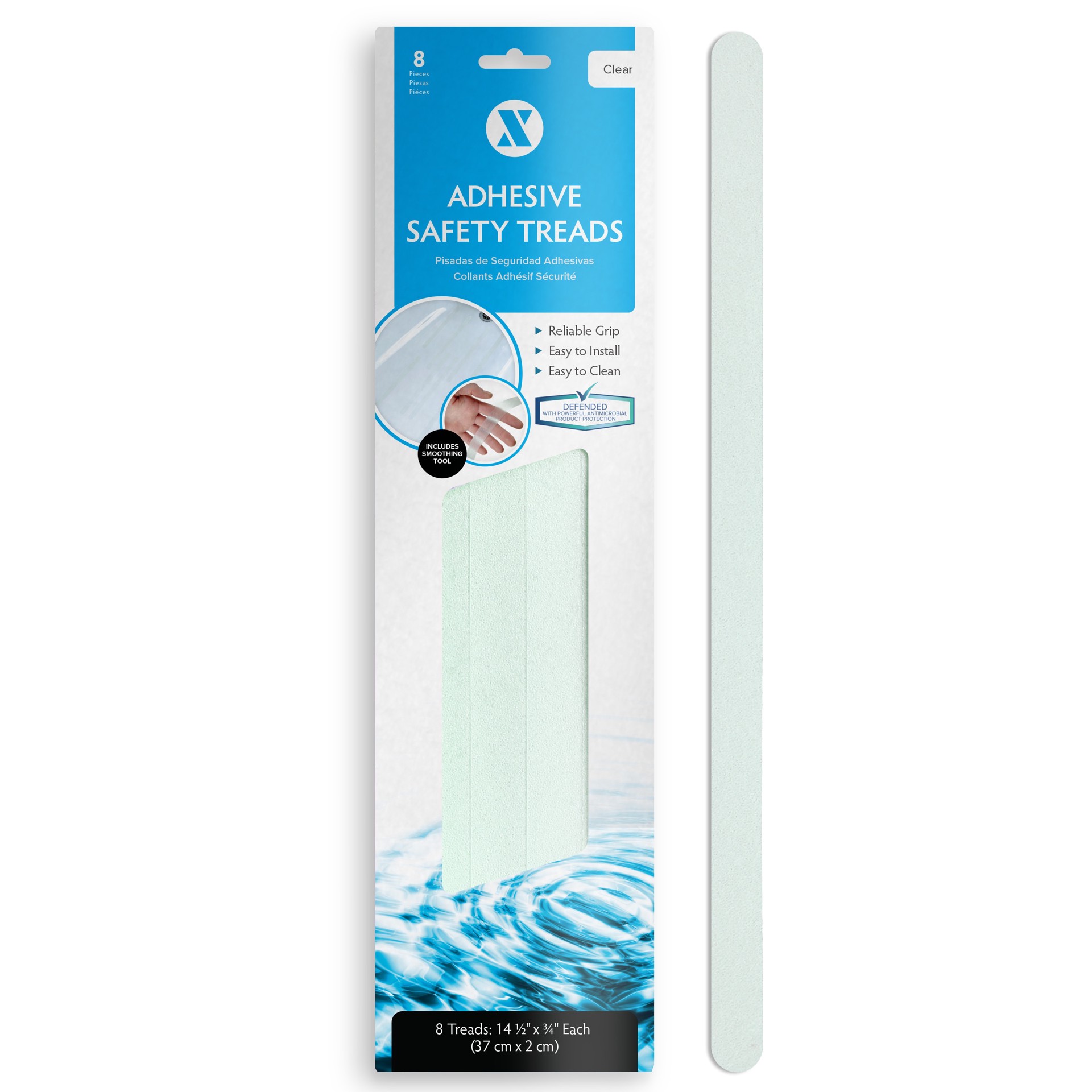 Non-Slip Adhesive Treads with versatile uses; bathtubs, showers, stairs and more. Built-in product protection inhibits the growth of odor-causing mold and mildew. 8 treads per package; easy to install…