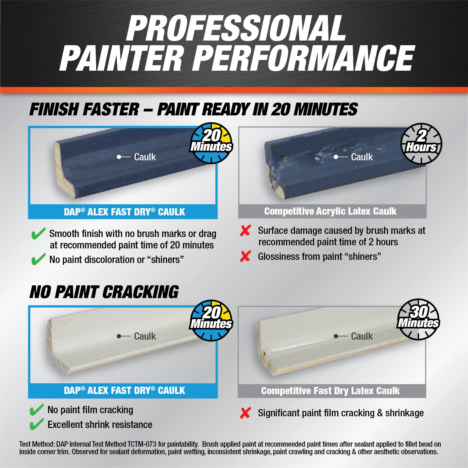 Paintable white caulk is paint ready in 20 minutes with brush or immediately with spray paint. Top applications include baseboards, crown molding, interior door casings and interior wood trim. Helps f…