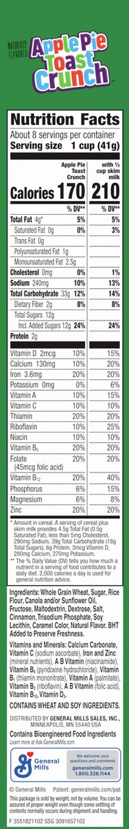 General Mills Apple Pie Toast Crunch, Breakfast Cereal with Whole Grain, 12 oz
