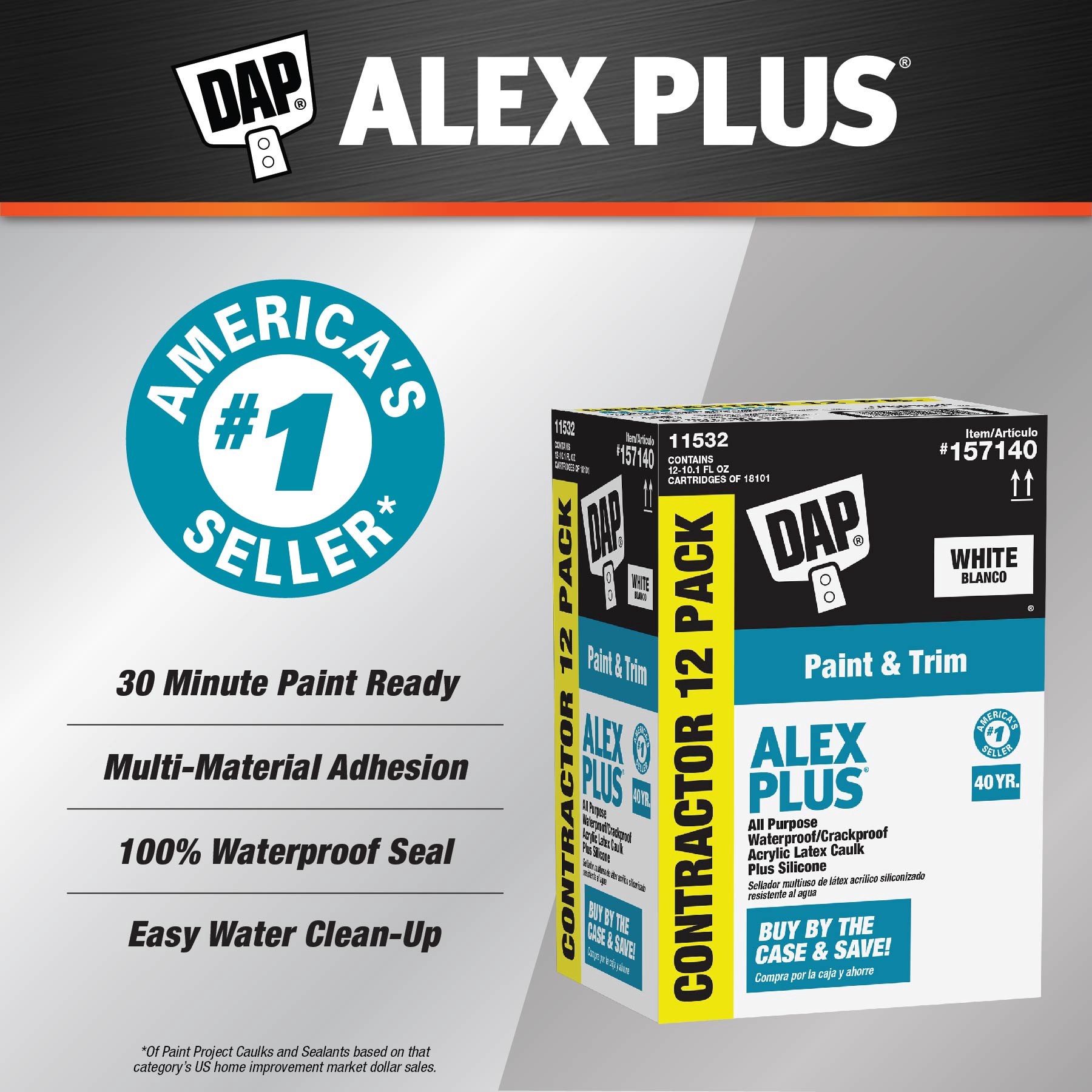 Paintable white caulk with strong multi-surface adhesion on many surfaces including wood, plaster, drywall. Use for painting projects - top applications include baseboards, crown molding, interior doo…