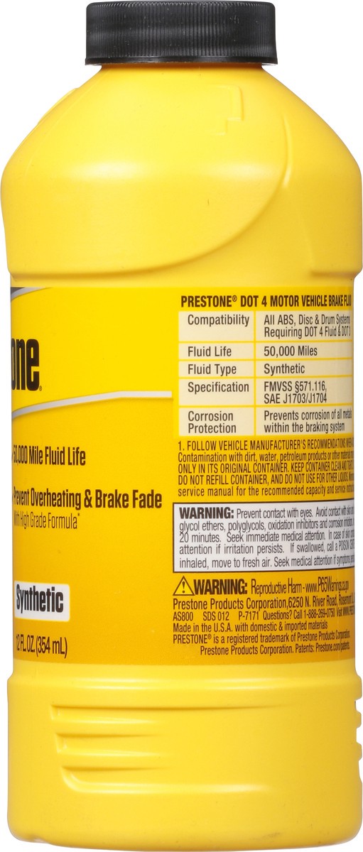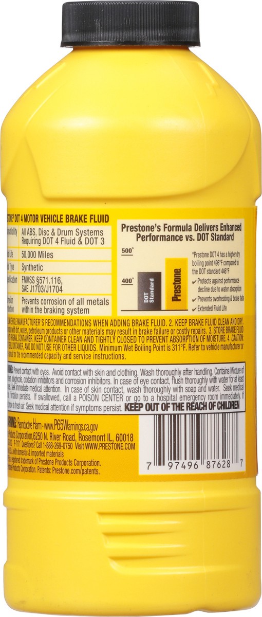 50,000 mile fluid life. Prevent overheating & brake fade with high grade formula (Prestone DOT 4 has a higher dry boiling point 496 degrees F compared to the DOT standard 446 degrees F. Protects again…