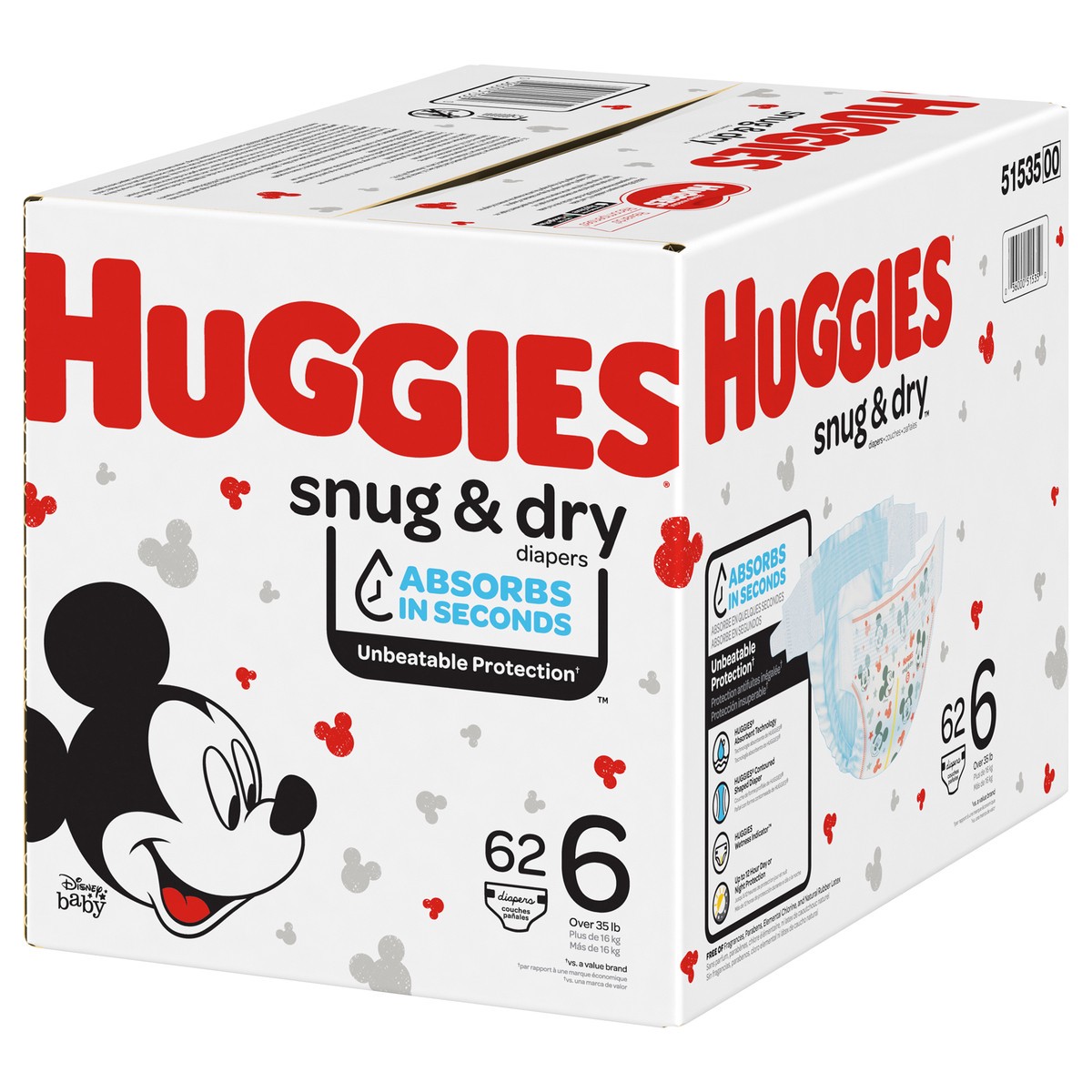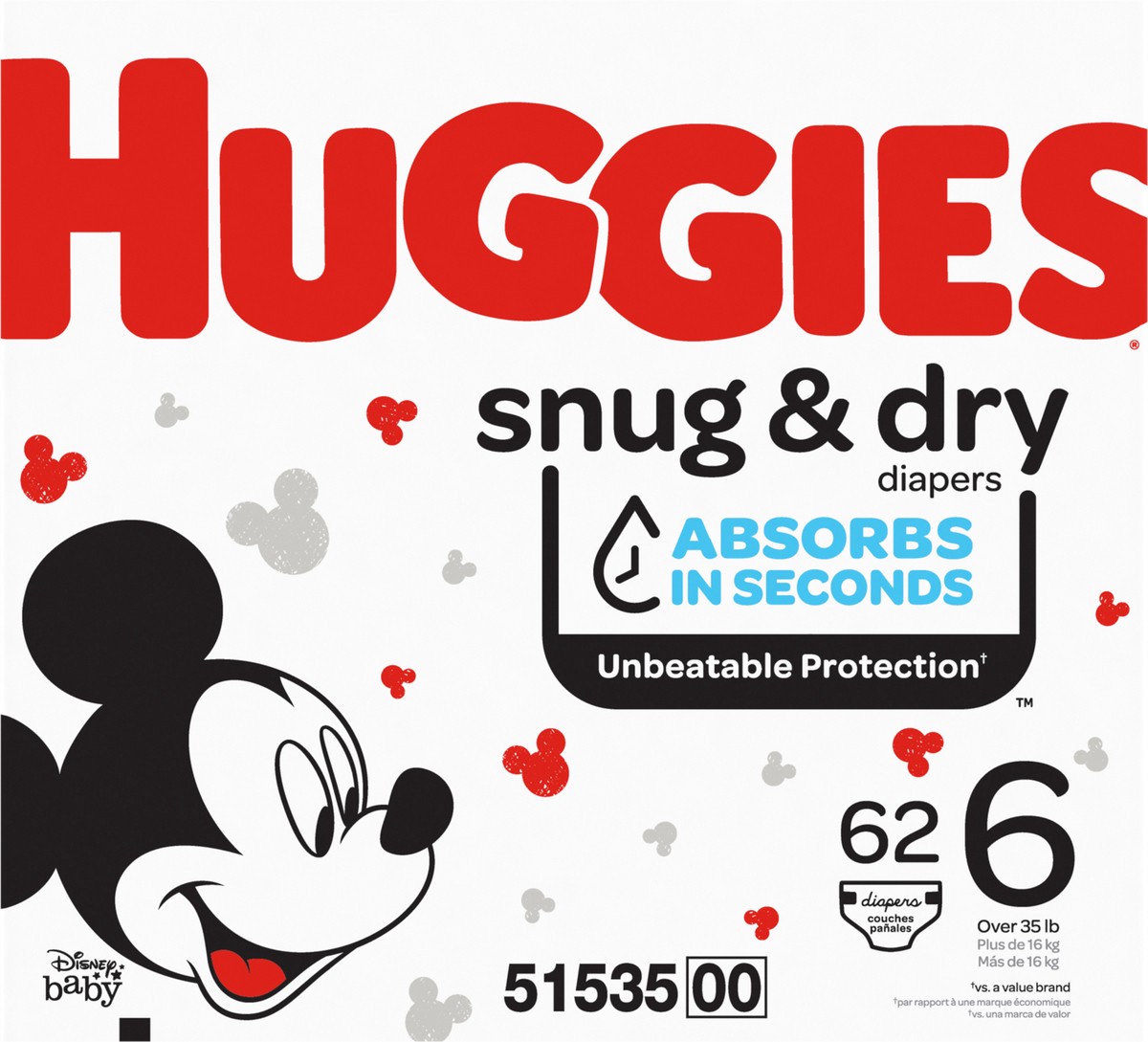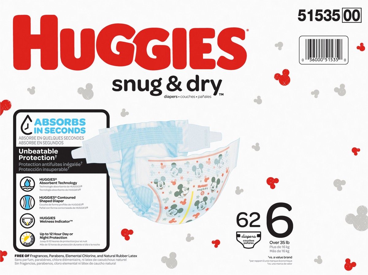Huggies Snug & Dry 6 (Over 35 lb) Disney Baby Diapers Size 6 62 ea