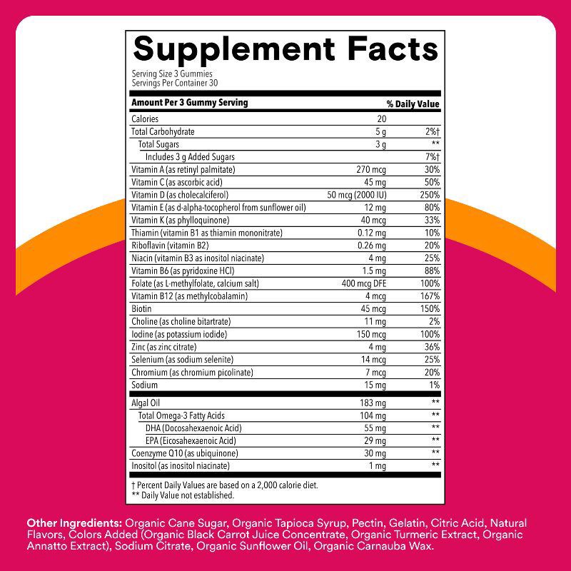 SmartyPants Women's Plus Multi & Omegas are formulated with 21 nutrients including vitamin D3 for immune support*, K for bone health*, B12 to support energy metabolism*, A for eyesight*, biotin to mai…
