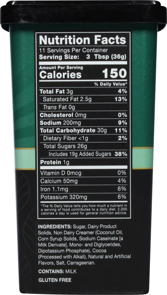 Sugar, Dairy Product Solids, Non Dairy Creamer (Coconut Oil, Corn Syrup Solids, Sodium Caseinate [a Milk Derivate], Mono- and Diglycerides, Dipotassium Phosphate), Cocoa (Processed with Alkali), Natur…