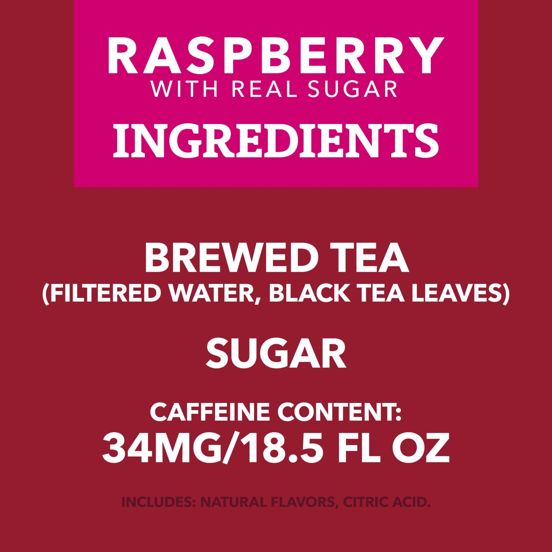 Brewed Tea (Filtered Water, Black Tea Leaves), Cane Sugar, Natural Flavors, Citric Acid.