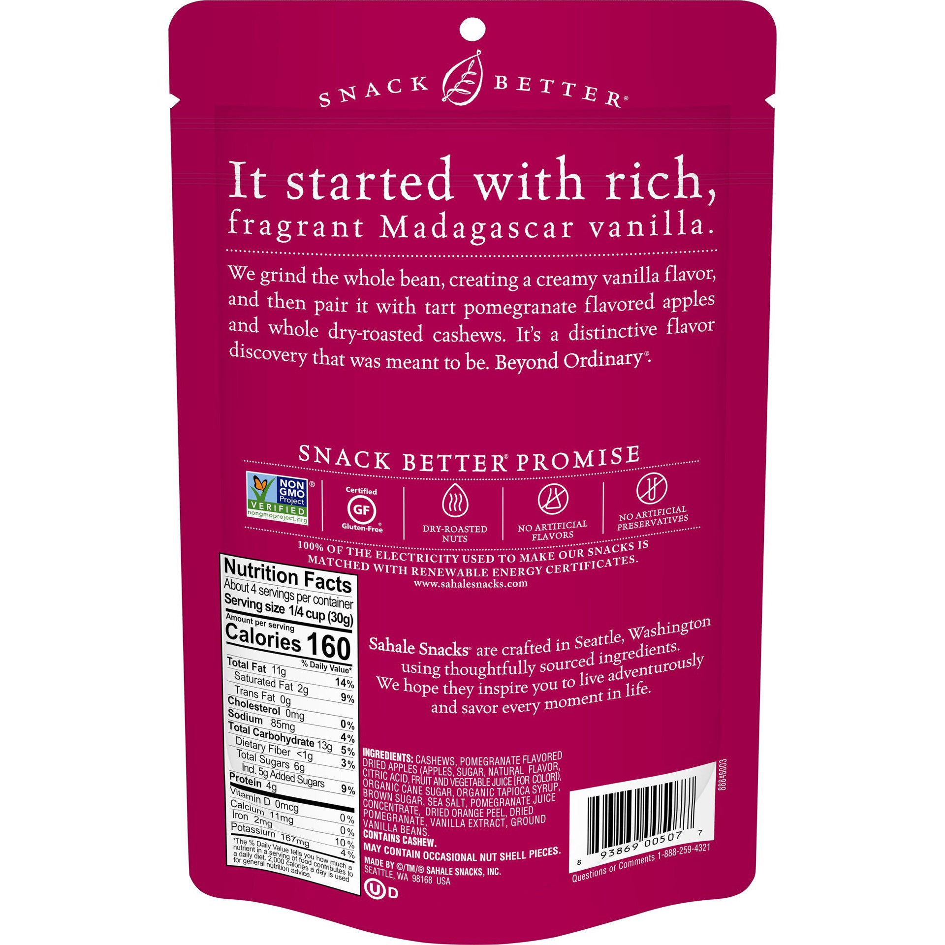 Sahale Snacks Snack Better Cashews Glazed Mix Naturally Pomegranate Vanilla Flavored - 4 Oz