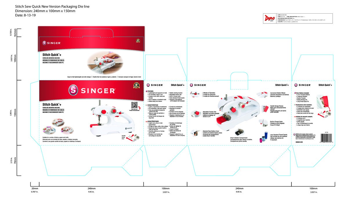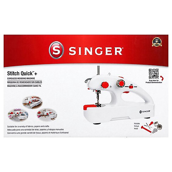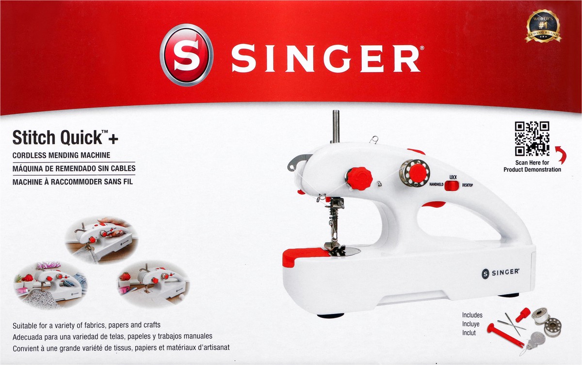 The SINGER Stitch Quick + is a portable mending machine for handheld or tabletop use. It is cordless and battery operated, and its slim, ergonomic design provides balance and control for sewing and me…