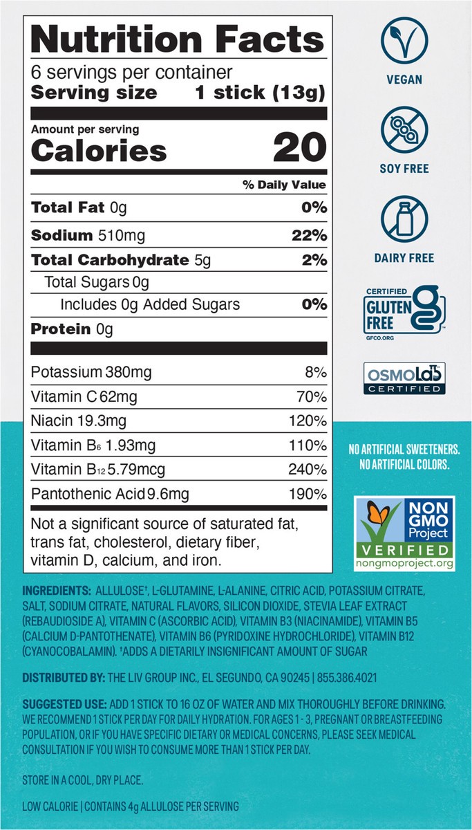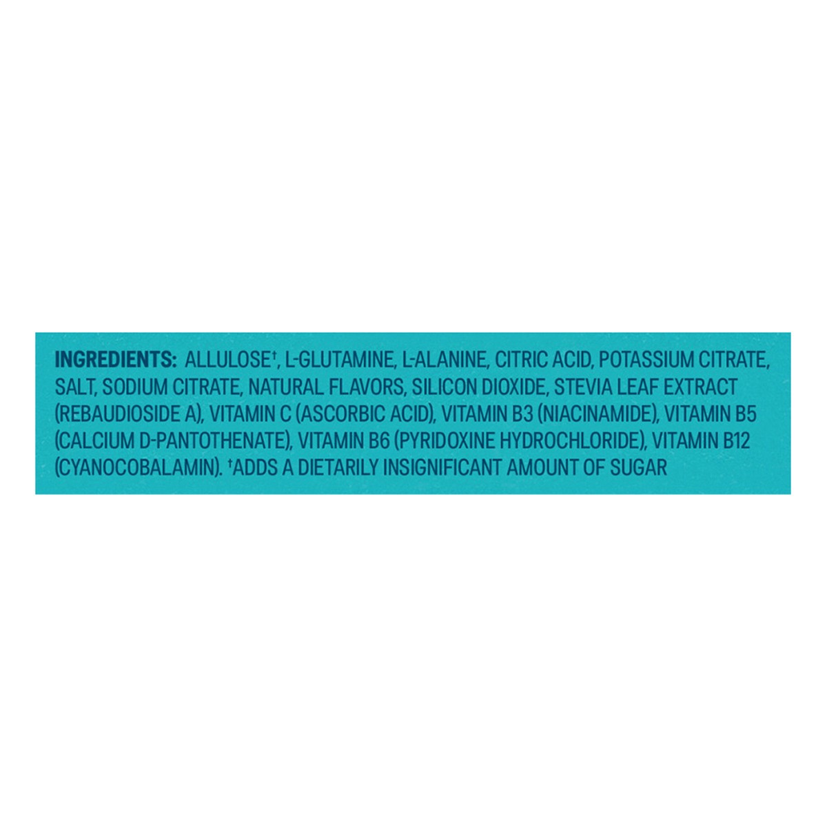 Allulose (a), L-Glutamine, L-Alanine, Citric Acid, Potassium Citrate, Salt, Sodium Citrate, Natural Flavors, Silicon Dioxide, Stevia Leaf Extract (Rebaudioside a), Vitamin C (Ascorbic Acid), Vitamin B…