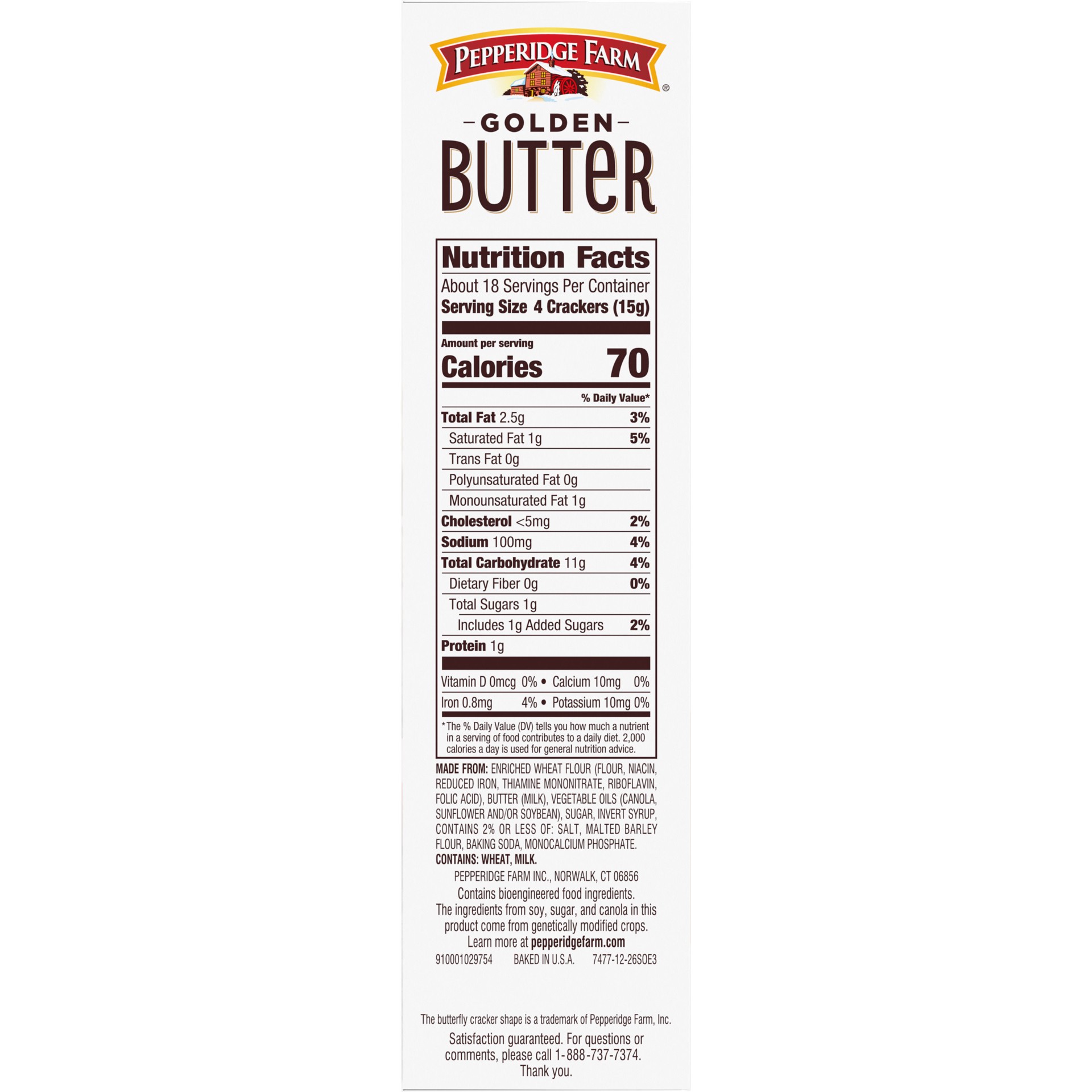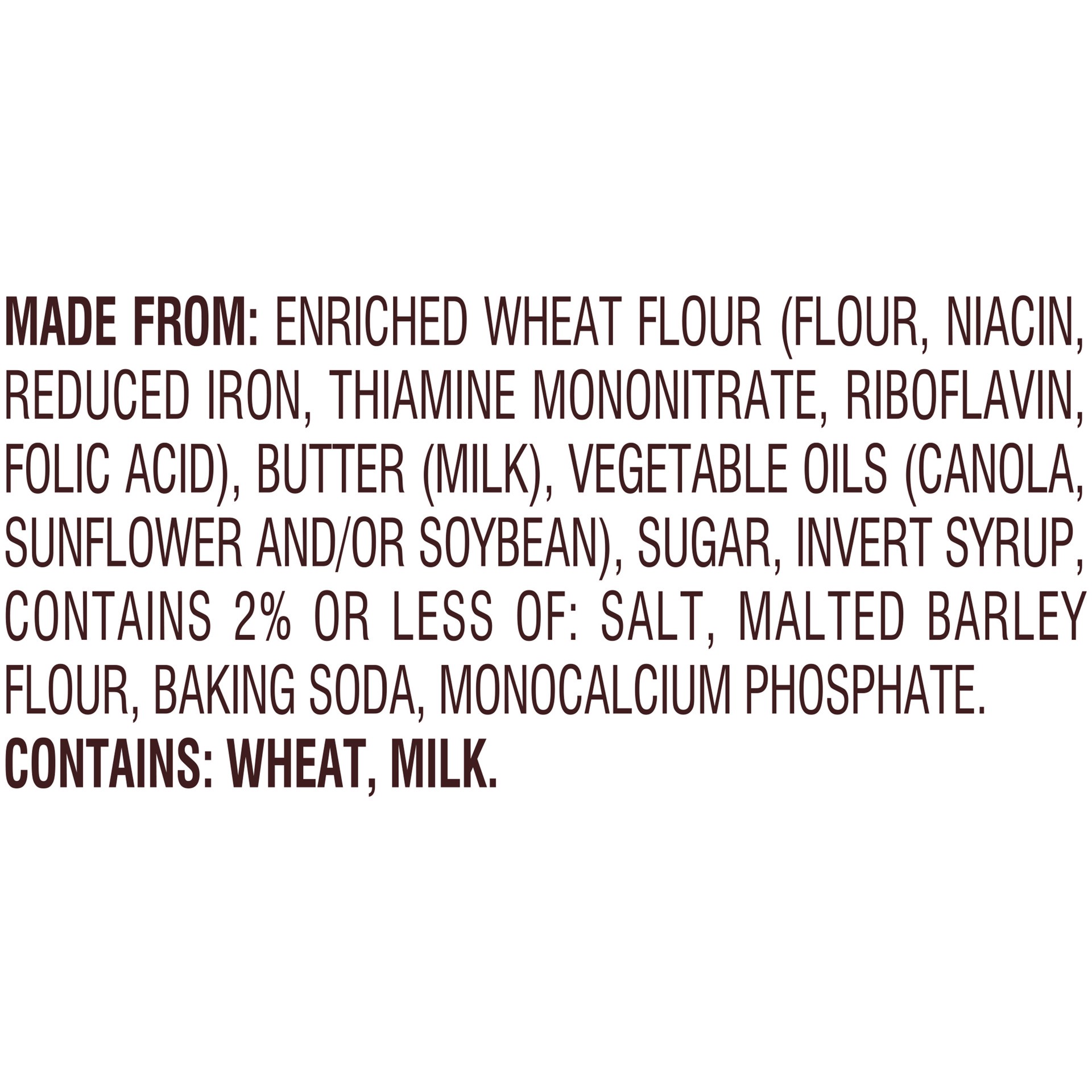 MADE FROM: ENRICHED WHEAT FLOUR (FLOUR, NIACIN, REDUCED IRON, THIAMINE MONONITRATE, RIBOFLAVIN, FOLIC ACID), BUTTER (MILK), VEGETABLE OILS (CANOLA, SUNFLOWER AND/OR SOYBEAN), SUGAR, INVERT SYRUP, CONT…