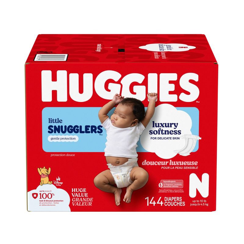 - Huggies Size Newborn Diapers: 144 Little Snugglers Baby Diapers (up to 10 lbs)